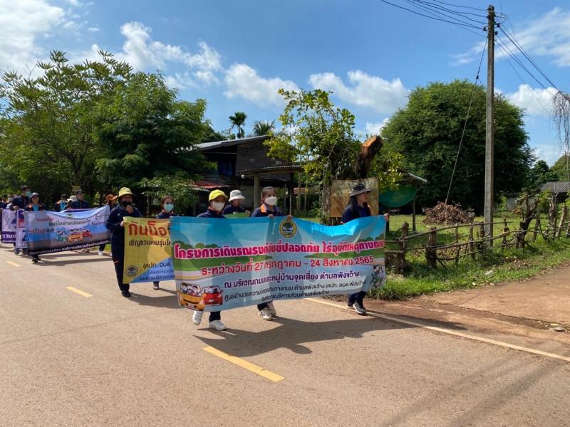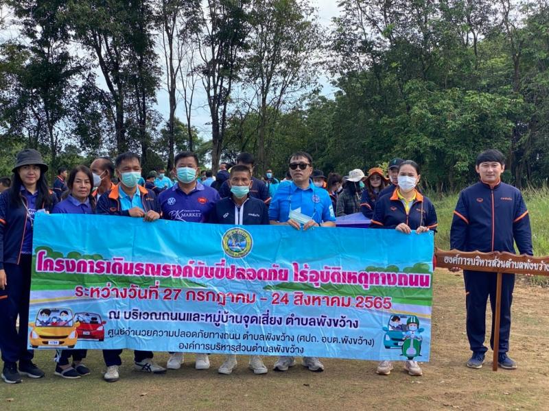 นายชัยณรงค์ อ่างคำ นายกองค์การบริหารส่วนตำบลพังขว้าง ได้มอบหมายให้ พันจ่าอากาศเอกสุรศักดิ์ คำโพธิ์ หัวหน้าสำนักปลัดจัดโครงการเดินรณรงค์ขับขี่ปลอดภัย ไร้อุบัติเหตุทางถนน ประจำปี 2565