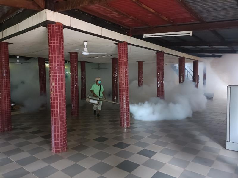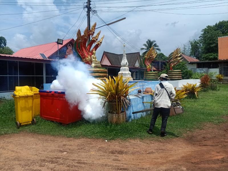 กิจกรรมพ่นหมอกควัน ณ สถานที่วัดและสำนักสงฆ์ทุกแห่ง ในเขตตำบลพังขว้าง วันที่ ๓๑ พ.ค.๖๕ - วันที่ ๖ มิ.ย ๖๕ กองสาธารณสุขและสิ่งแวดล้อม องค์การบริหารส่วนตำบลพังขว้าง