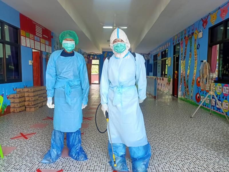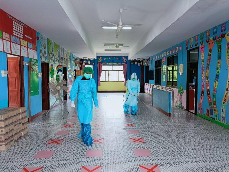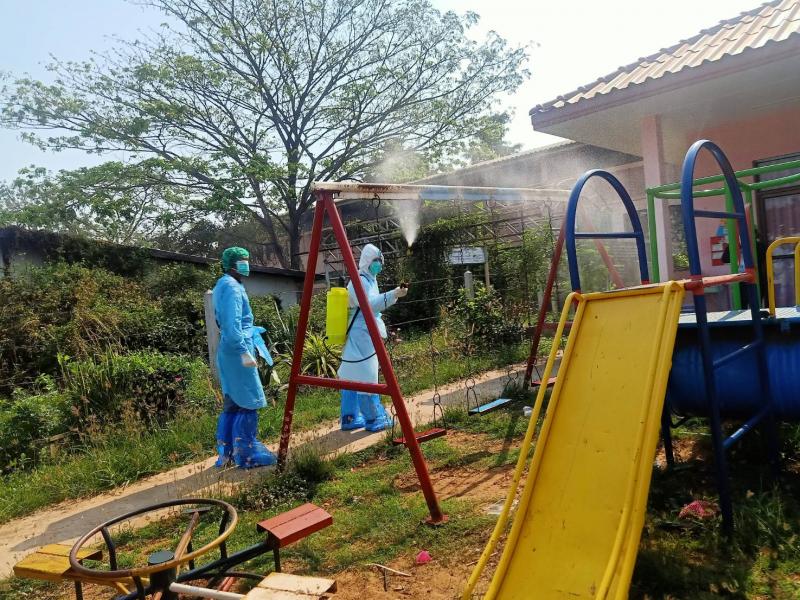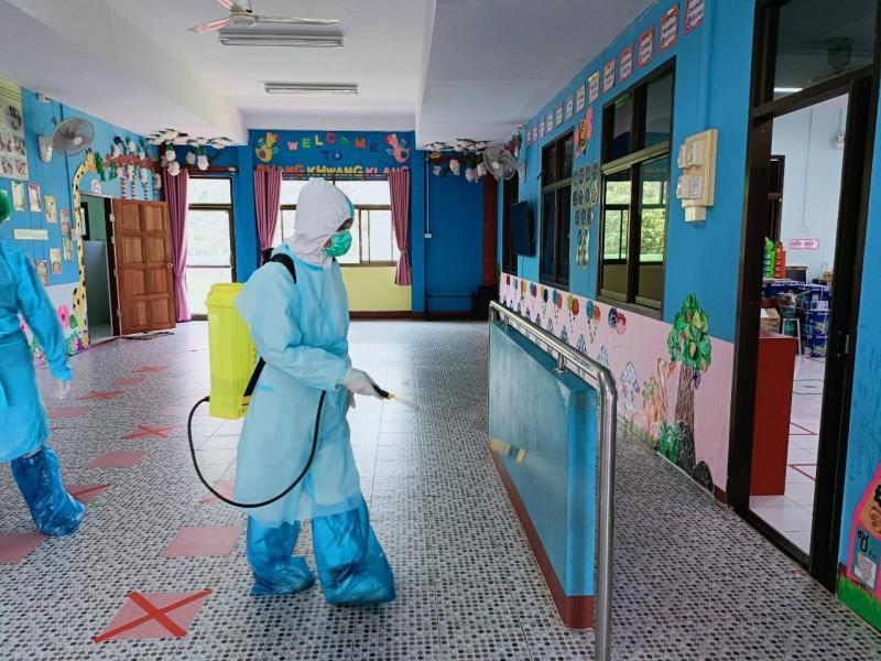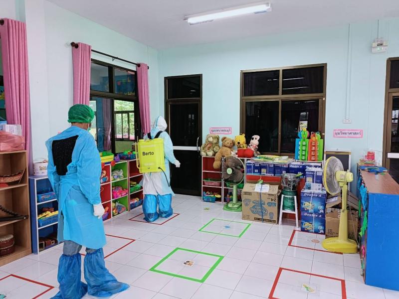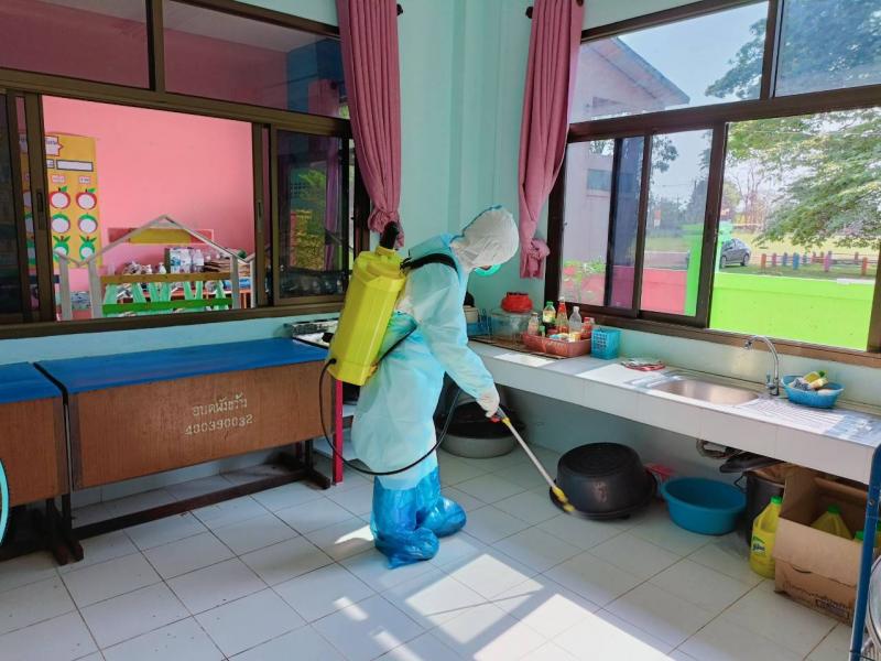 สิ่งแวดล้อม พร้อมคณะเจ้าหน้าที่กองสาธาฯ ลงพื้นที่ฉีดพ่นทำความสะอาดฆ่าเชื้อโควิด- 19 ณ ศูนย์พัฒนาเด็กเล็กบ้านพังขว้างกลาง