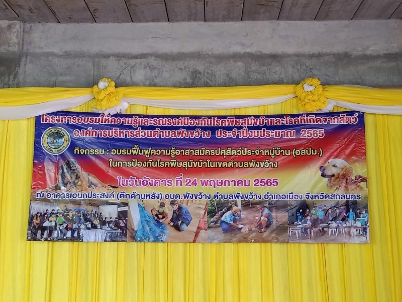 โครงการอบรมให้ความรู้และรณรงค์ป้องกันโรคพิษสุนัขบ้าและโรคที่เกิดจากสัตว์ ประจำปีงบประมาณ 2565 กองสาธารณสุขและสิ่งแวดล้อม องค์การบริหารส่วนตำบลพังขว้าง