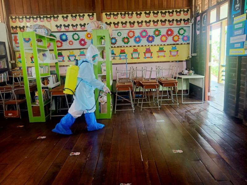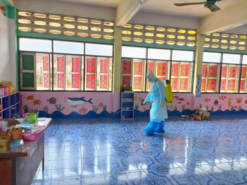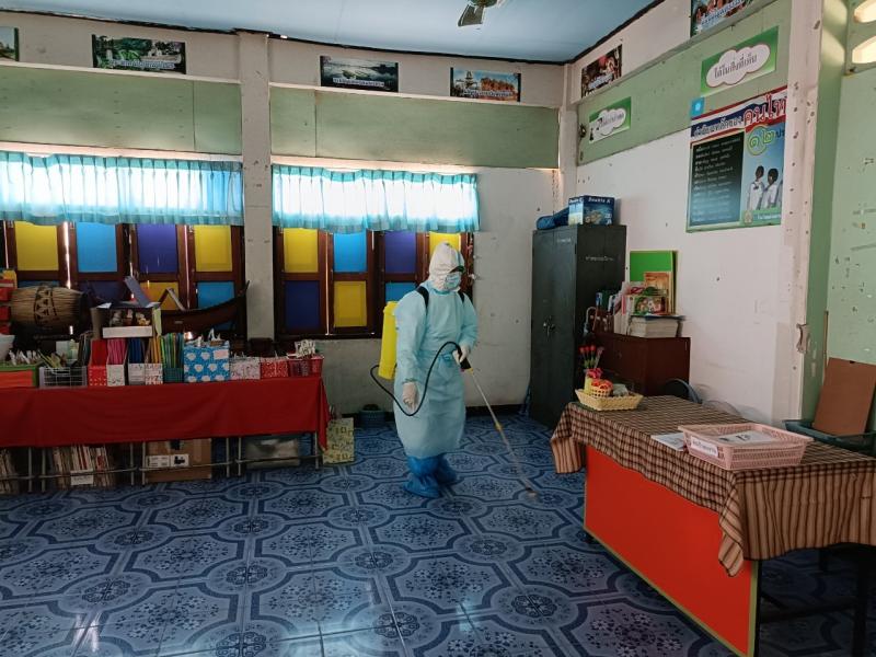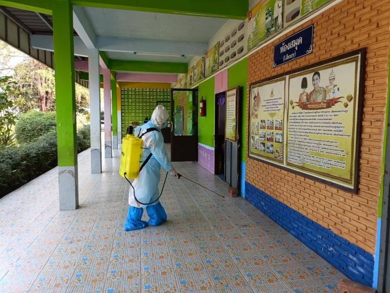 ณ โรงเรียนห้วยทรายวิทยา พร้อมมอบวัสดุอุปกรณ์ในการทำความสะอาดฆ่าเชื้อโควิด -19 และให้คำแนะนำในการดูแลและจัดการระบบการเก็บขยะในกรณีเกิดการระบาดของโรคติดเชื้อไวรัสโคโรนา 2019 (COVID-19)ตามมาตรการของจังหวัดสกลนครและมาตรการของกระทรวงสาธารณสุข