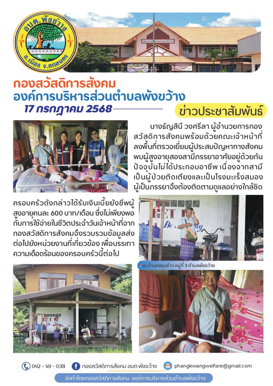 กองสวัสดิการสังคม ลงพื้นที่ตรวจเยี่ยมผู้ประสบปัญหาทางสังคม [17 กรกฎาคม 2568]