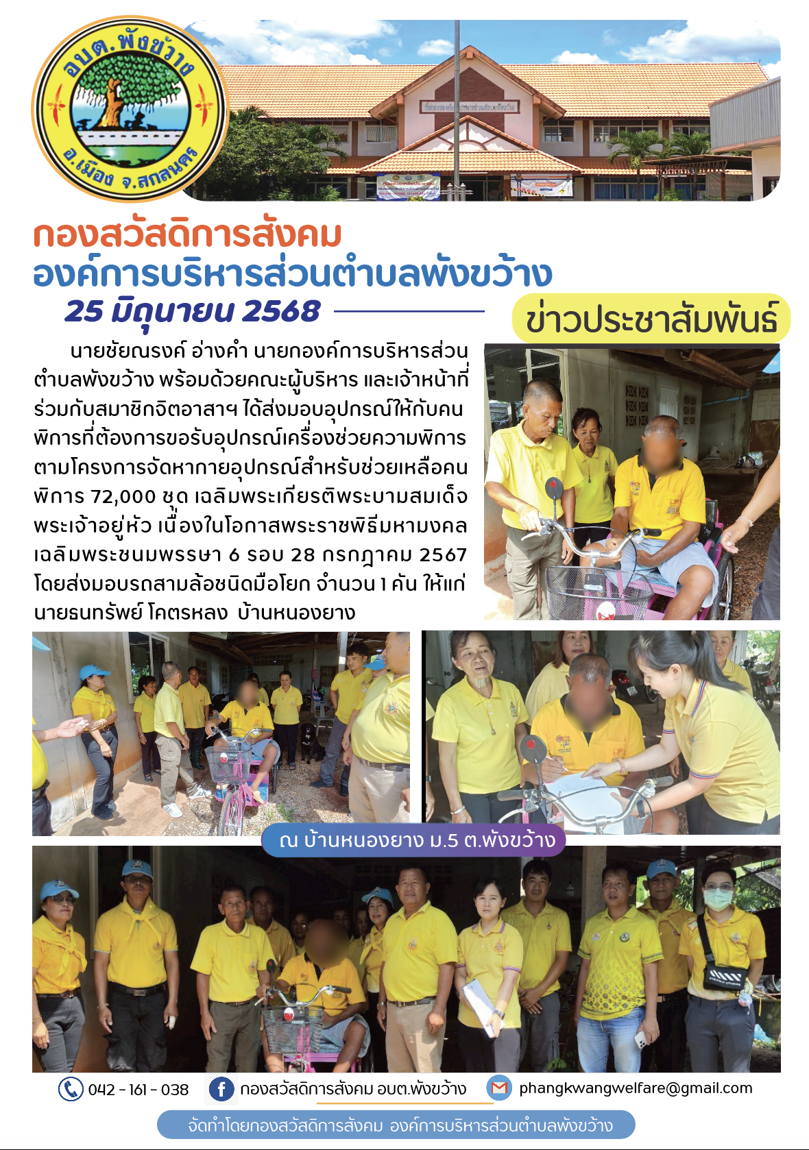 ส่งมอบอุปกรณ์ให้กับคนพิการที่ต้องการขอรับอุปกรณ์เครื่องช่วยความพิการ ตามโครงการจัดหากายอุปกรณ์สำหรับช่วยเหลือคนพิการ 72,000 ชุด เฉลิมพระเกียรติพระบามสมเด็จพระเจ้าอยู่หัว [5 มิถุนายน 2568]