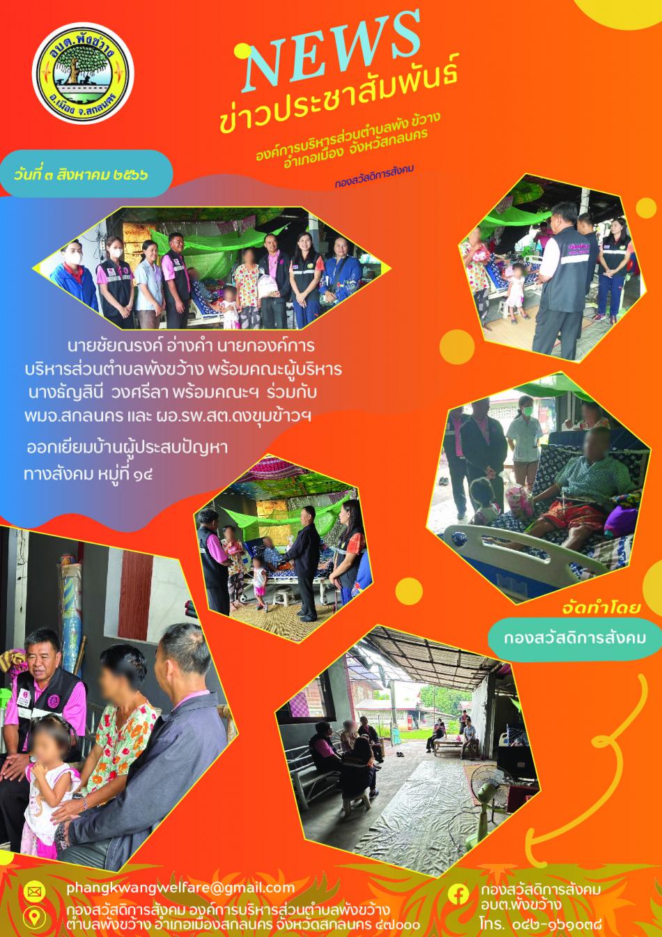 ประชาสัมพันธ์กองสวัสดิการ วันที่ ๓ สิงหาคม ๒๕๖๖ ออกเยี่ยมบ้านผู้ประสบปัญหาทางสังคม ม.๑๔ ฯ [3 สิงหาคม 2566]
