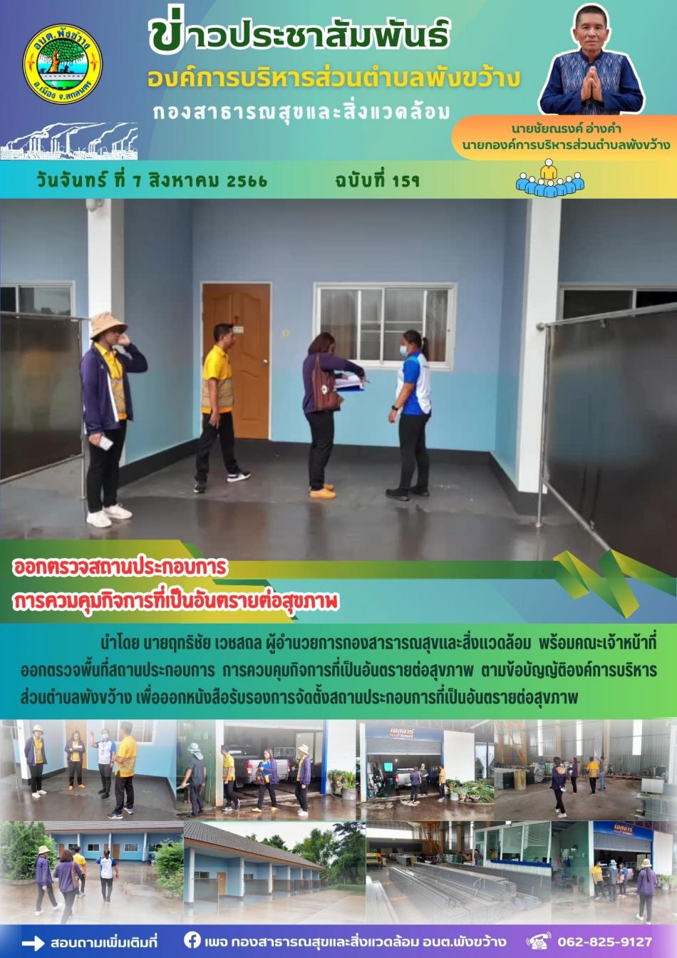 ออกตรวจสถานประกอบการ การควมคุมกิจการที่เป็นอันตรายต่อสุขภาพ [7 สิงหาคม 2566]