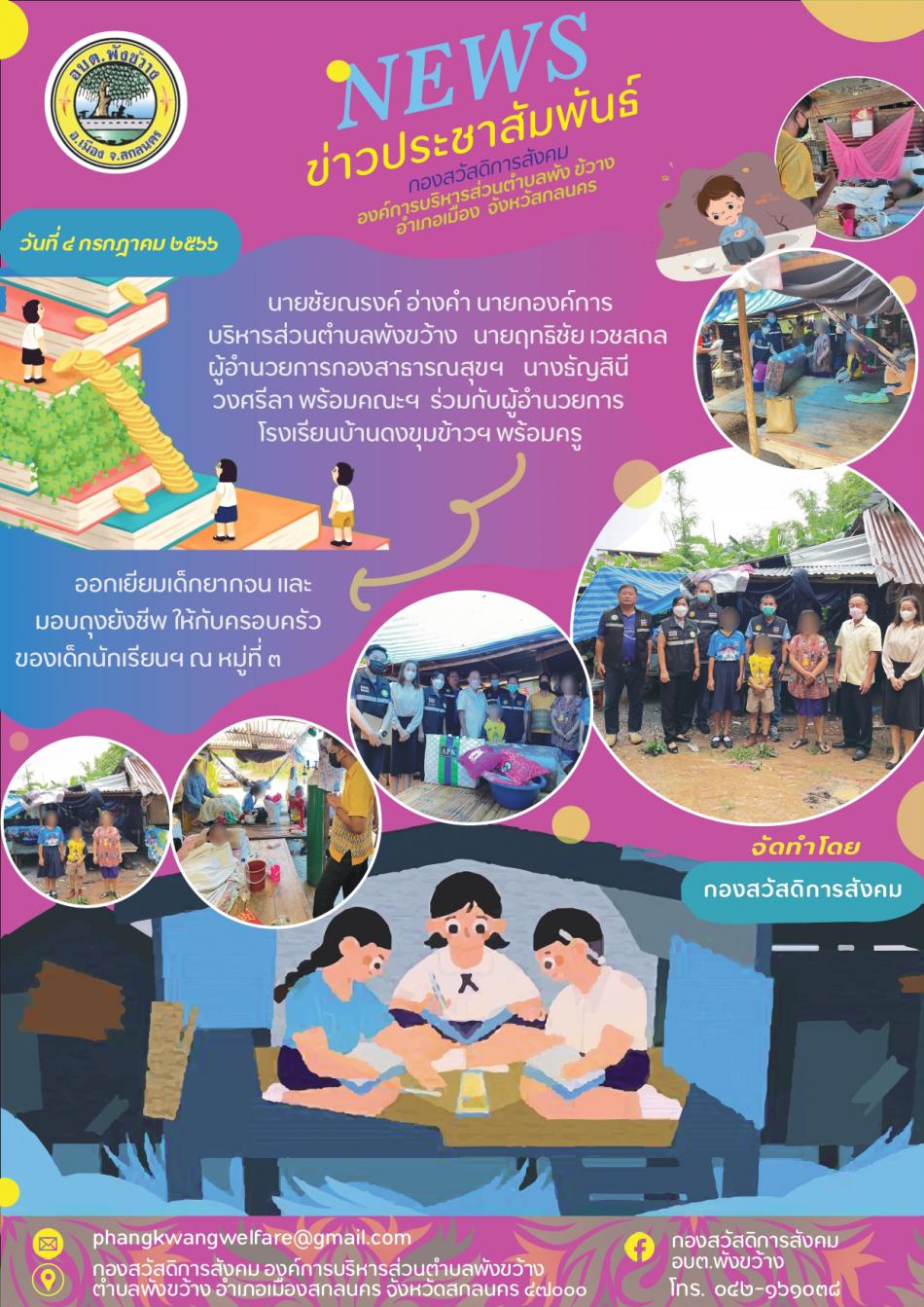 นายก อบต.พังขว้าง พร้อมคณะฯ ร่วมกับ รร.บ้านดงขุมข้าวฯ เยียมเด็กยากจน และ มอบถุงยังชีพ ให้กับครอบครัวฯ [4 กรกฎาคม 2566]