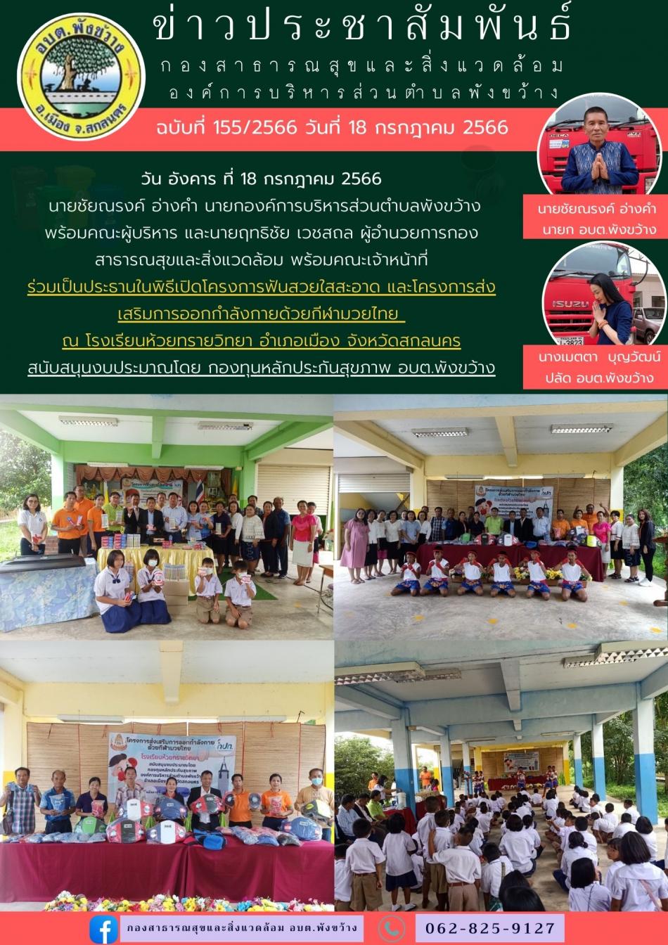 โครงการฟันสวยใสสะอาด และโครงการส่งเสริมการออกกำลังกายด้วยกีฬามวยไทย ณ โรงเรียนห้วยทรายวิทยา อำเภอเมือง จังหวัดสกลนคร ประจำปี 2566 [18 กรกฎาคม 2566]