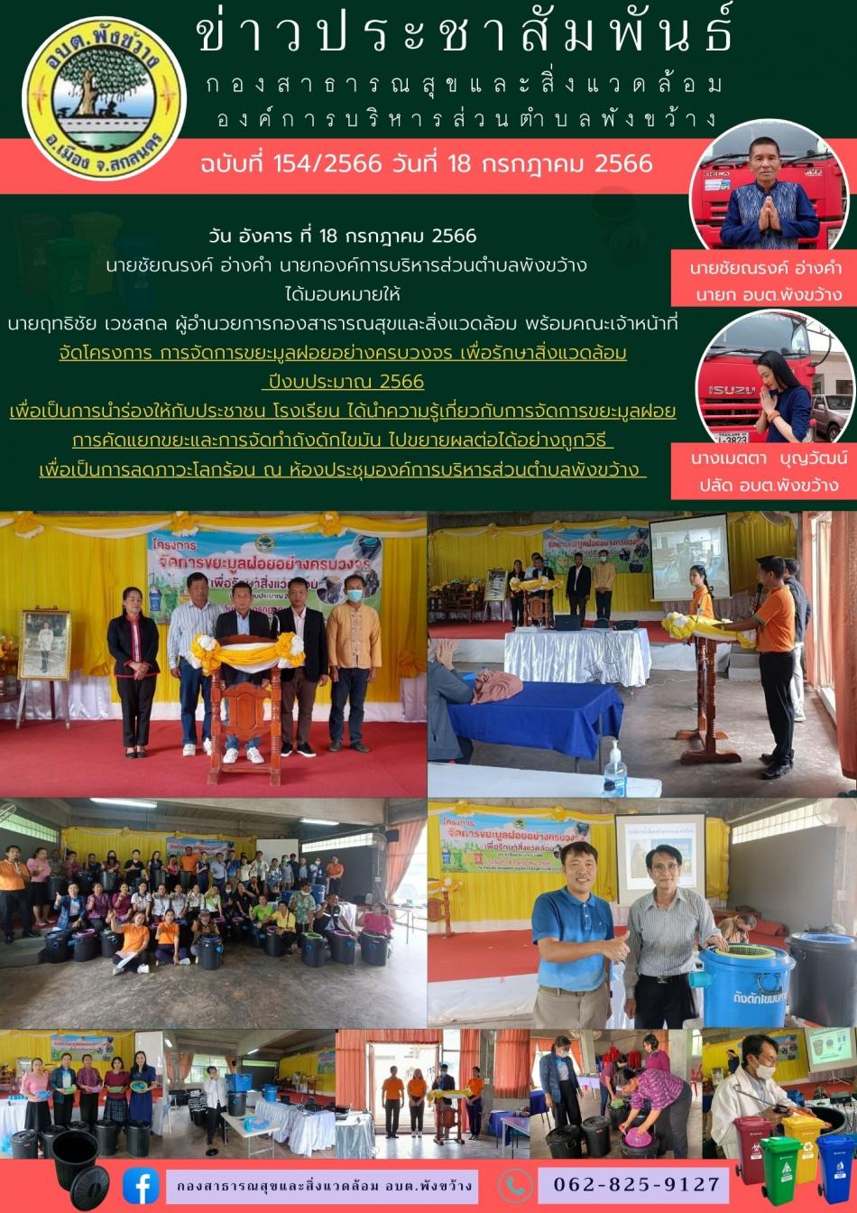 โครงการ การจัดการขยะมูลฝอยอย่างครบวงจร เพื่อรักษาสิ่งแวดล้อม ปีงบประมาณ 2566 [18 กรกฎาคม 2566]