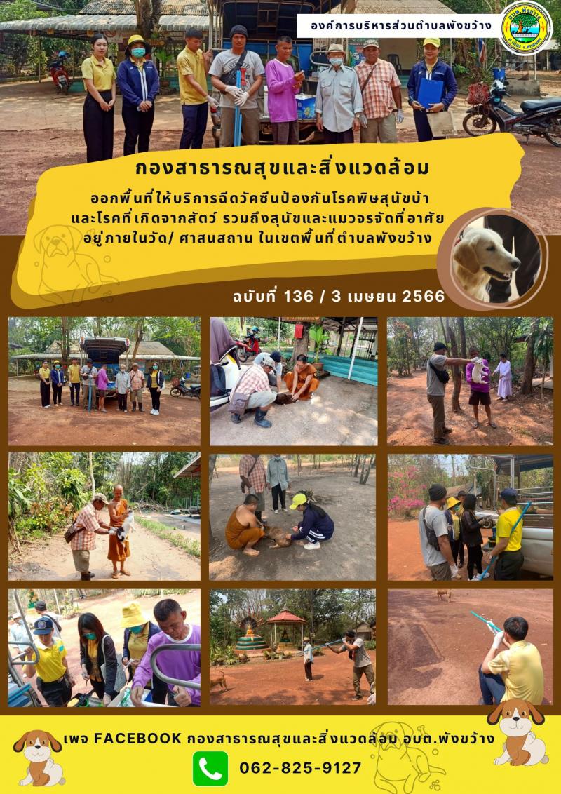ออกพื้นที่ให้บริการฉีดวัคซีนป้องกันโรคพิษสุนัขบ้าและโรคที่เกิดจากสัตว์ ประจำปี 2566 [3 เมษายน 2566]