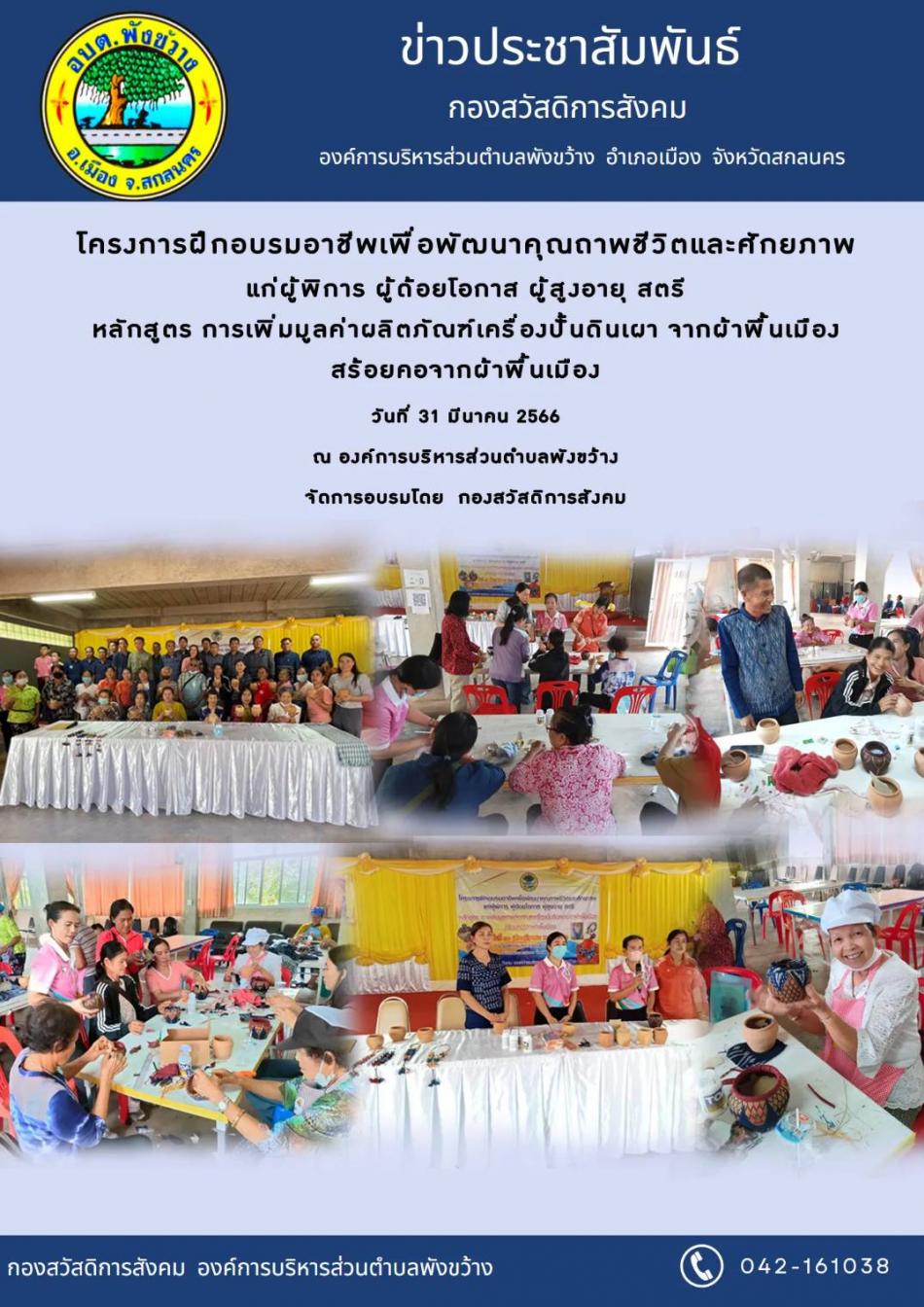 โครงการฝึกอบรมวิชาชีพเพื่อพัฒนาคุณภาพชีวิต และพัฒนาศักยภาพ แก่ผู้พิการ ผู้ด้อยโอกาส ผู้สูงอายุ สตรี “ การเพิ่มมูลค่าและผลิตภัณฑ์เครื่องปั้นดินเผาจากผ้าพื้นเมือง สร้อยคอจากผ้าพื้นเมือง ” [30 มีนาคม 2566]