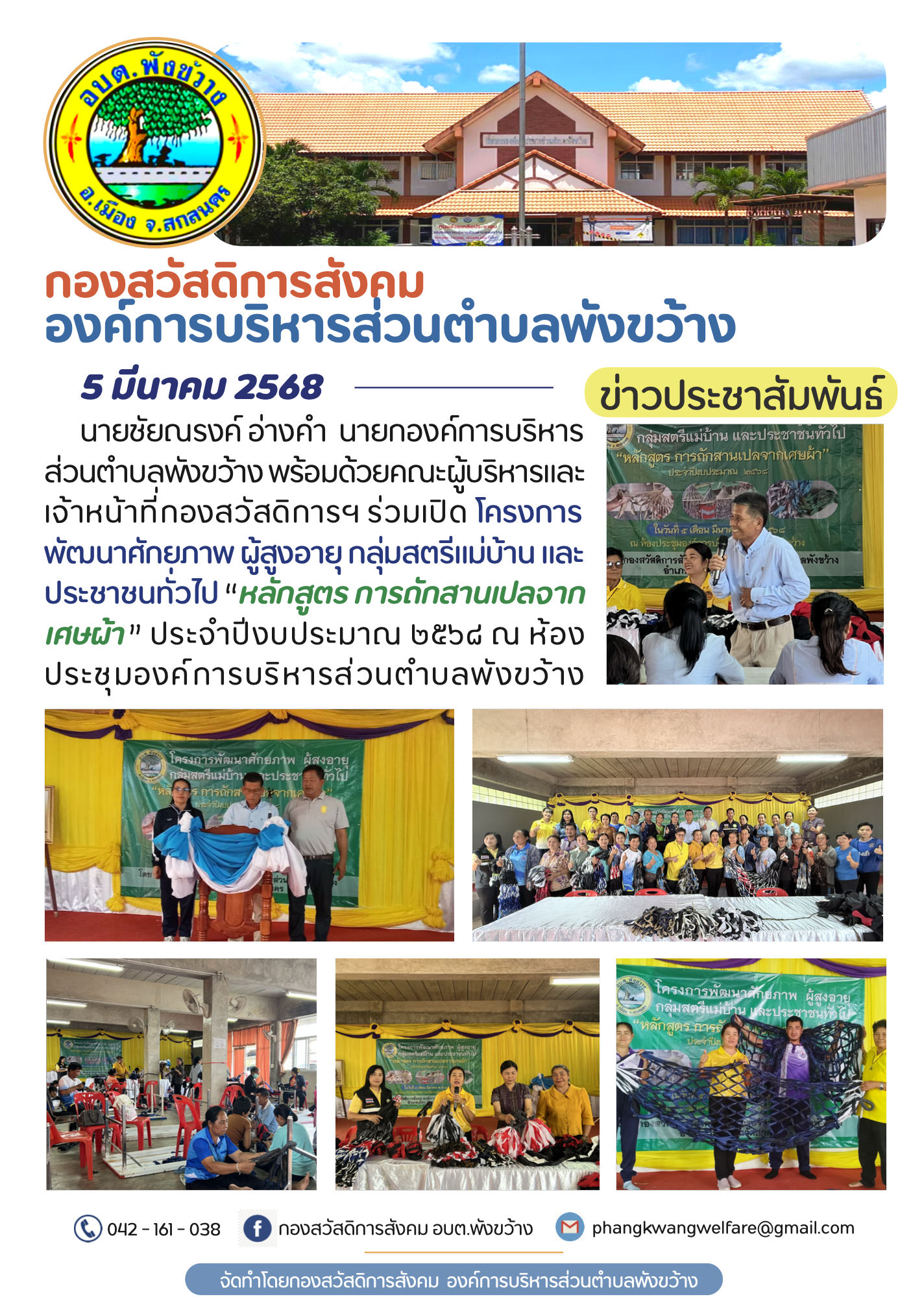 โครงการพัฒนาศักยภาพ ผู้สูงอายุ กลุ่มสตรีแม่บ้าน และประชาชนทั่วไป "หลักสูตร การถักสานเปลจากเศษผ้า" [5 มีนาคม 2568]