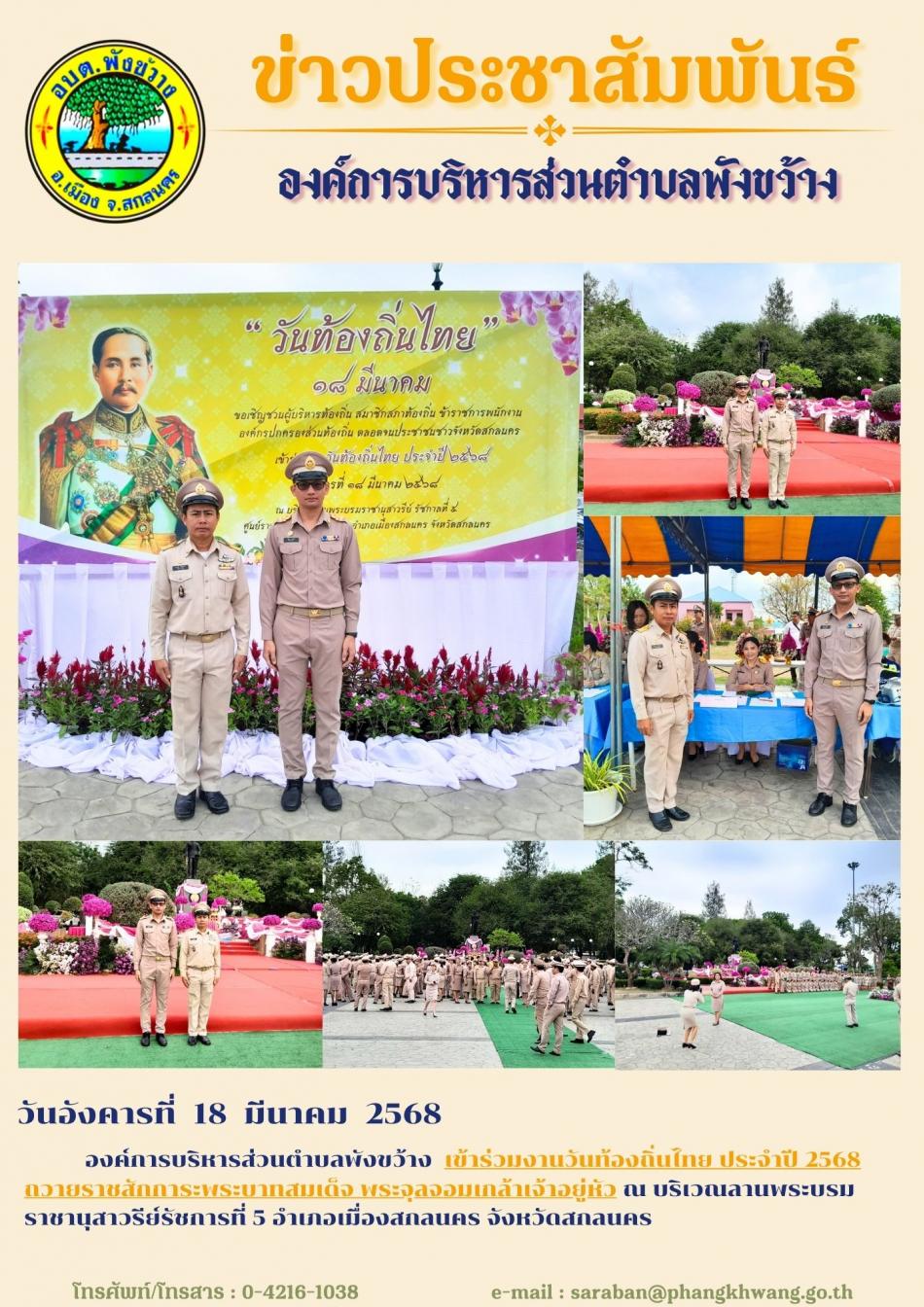 องค์การบริหารส่วนตำบลพังขว้าง เข้าร่วมพิธีวางพานพุ่ม “วันที่ระลึกพระบาทสมเด็จพระพุทธยอดฟ้าจุฬาโลกมหาราช และวันที่ระลึกมหาจักรีบรมราชวงศ์ ประจำปี 2568” ณ หอประชุมจามจุรี 1 มหาวิทยาลัยราชภัฏสกลนคร [31 มีนาคม 2568]