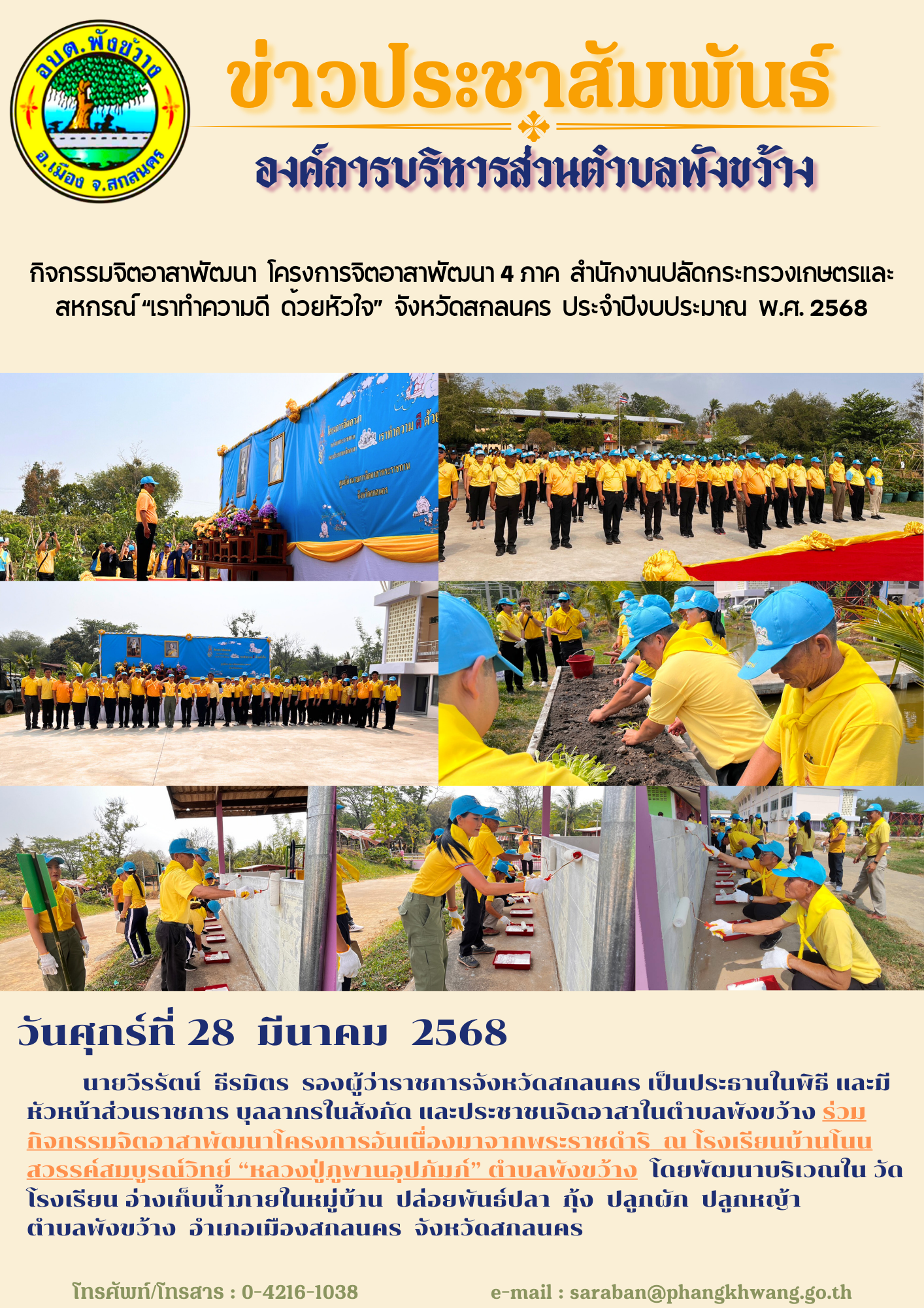 กิจกรรมจิตอาสาพัฒนา โครงการจิตอาสาพัฒนา 4 ภาค สำนักงานปลัดกระทรวงเกษตรและสหกรณ์ “เราทำความดี ด้วยหัวใจ” จังหวัดสกลนคร ประจำปีงบประมาณ พ.ศ. 2568 [31 มีนาคม 2568]