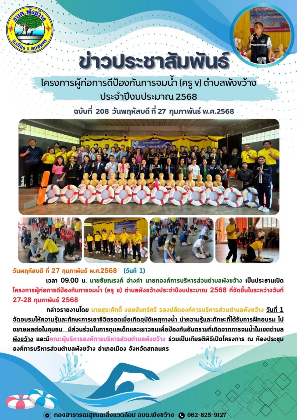 โครงการผู้ก่อการดีป้องกันการจมน้ำ (ครู ข) ตำบลพังขว้าง ประจำปีงบประมาณ 2568 (วันที่ 1) [27 กุมภาพันธ์ 2568]