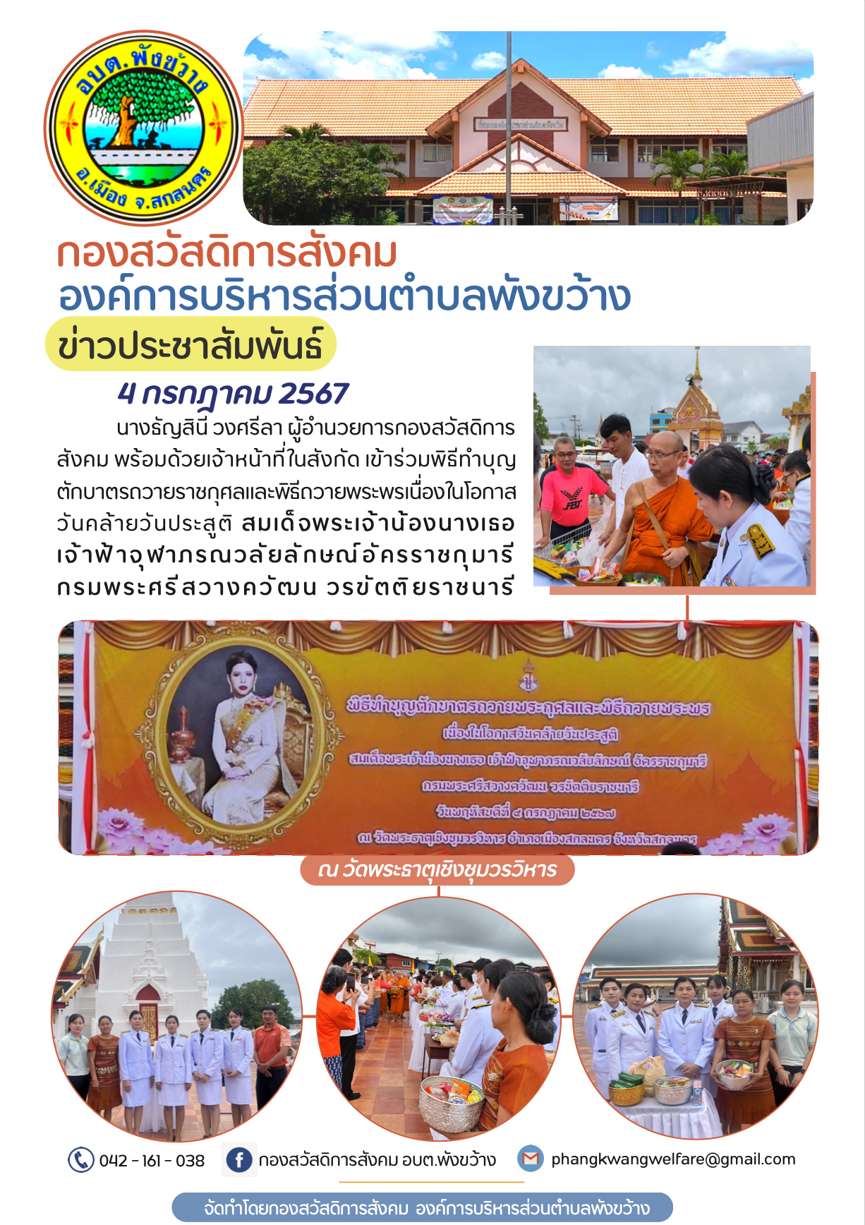 พิธีทำบุญตักบาตรถวายพระกุศลและพิธีถวายพระพร เนื่องในโอกาสวันคล้ายวันประสูติ สมเด็จพระเจ้าน้องนางเธอ เจ้าฟ้าจุฬาภรณวลัยลักษณ์อัครราชกุมารี กรมพระศรีสวางควัฒน วรขัตติยราชนารี [4 กรกฎาคม 2567]