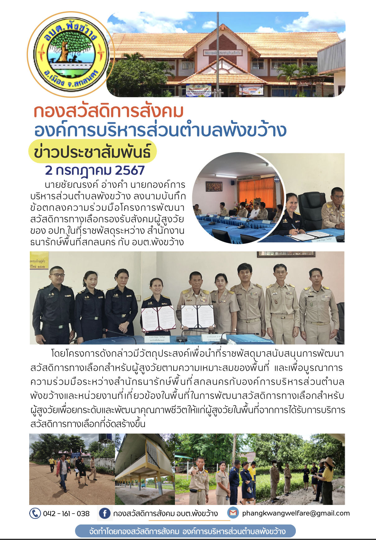 นายชัยณรงค์ อ่างคำ นายกองค์การบริ หารส่วนตำบลพังขว้าง ลงนามบันทึกข้อตก ลงความร่วมมือโครงการพัฒนาสวัสดิการ ทางเลือกรองรับสังคมผู้สูงวัยของ อปท. ใน ที่ราชพัสดุระหว่าง สำนักงานธนารักษ์พื้นที่ สกลนคร กับ... [2 กรกฎาคม 2567]