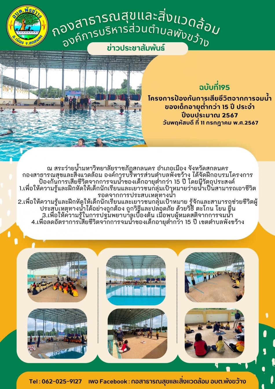 โครงการป้องกันการเสียชีวิตจากการจมน้ำของเด็กอายุต่ำกว่า 15 ปี ประจำปีงบประมาณ 2567 วันที่ 2 [11 กรกฎาคม 2567]