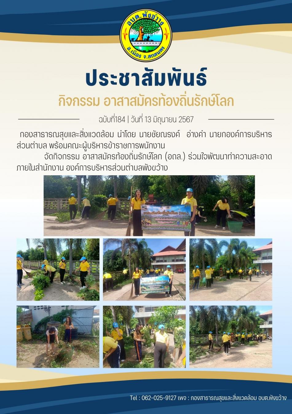 อาสาสมัครท้องถิ่นรักษ์โลก (อถล.) ร่วมใจพัฒนาทำความสะอาดภายในสำนักงาน องค์การบริหารส่วนตำบลพังขว้าง [13 มิถุนายน 2567]