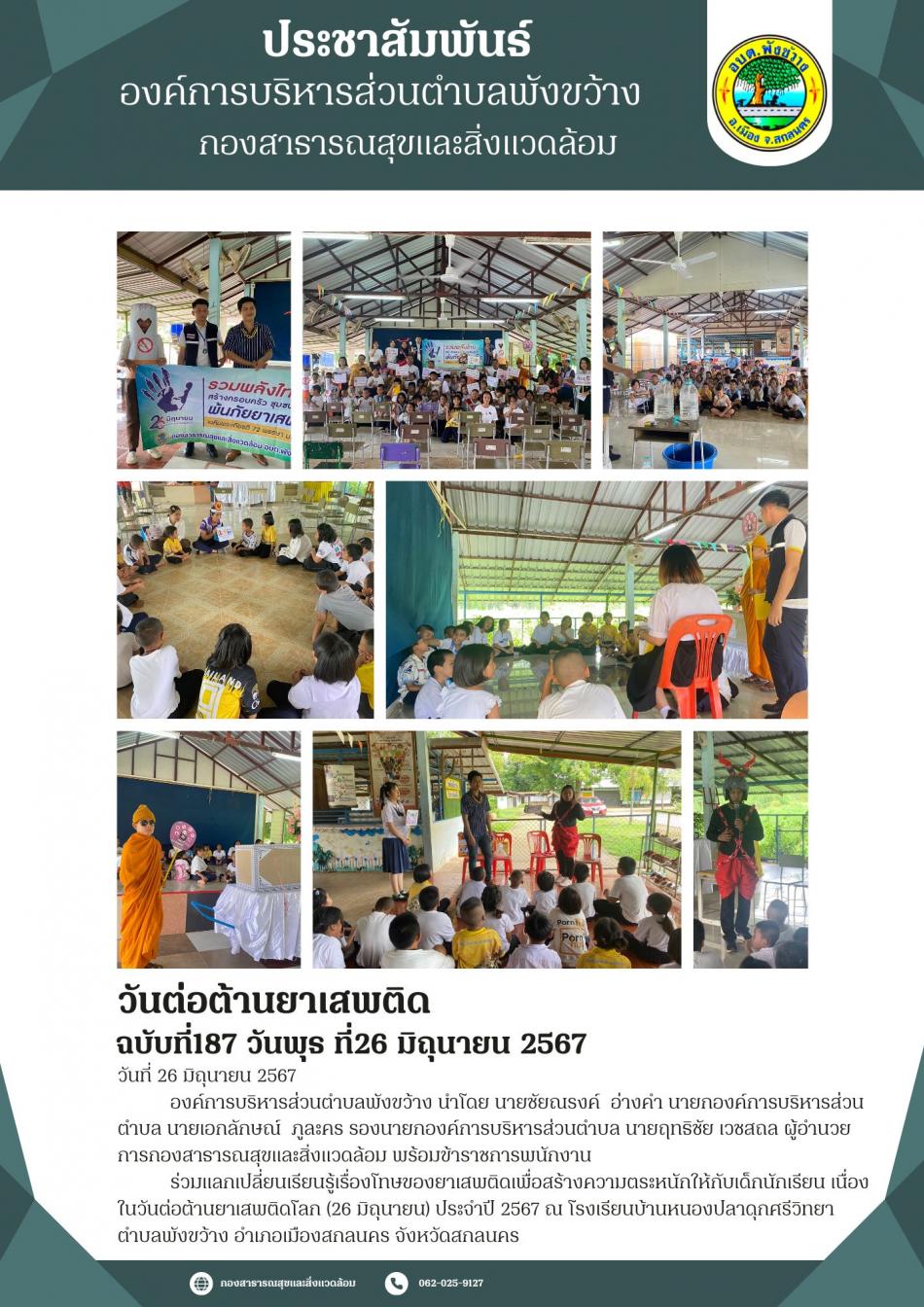วันต่อต้านยาเสพติด ณ โรงเรียนบ้านหนองปลาดุกศรีวิทยา [26 มิถุนายน 2567]