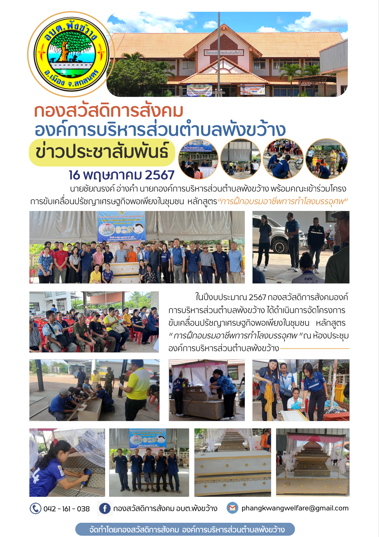 โครงการขับเคลื่อนปรัชญาเศรษฐกิจพอเพียงในชุมชน หลักสูตร "การฝึกอบรมอาชีพการทำโลงบรรจุศพ" [16 พฤษภาคม 2567]