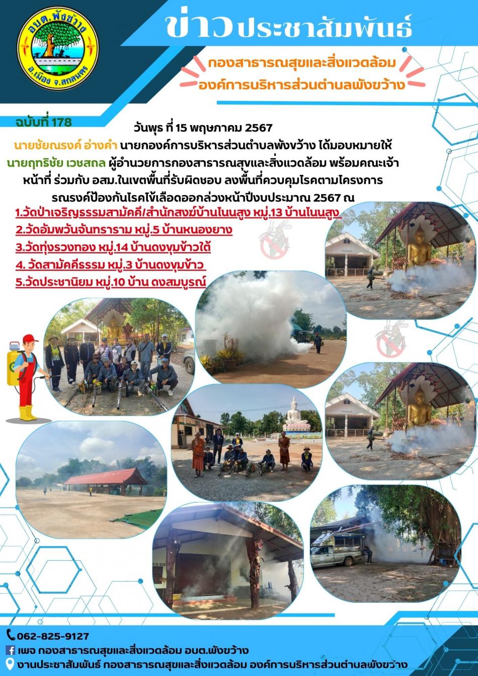 ควบคุมโรคตามโครงการรณรงค์ป้องกันโรคไข้เลือดออกล่วงหน้าปีงบประมาณ 2567 [14 พฤษภาคม 2567]