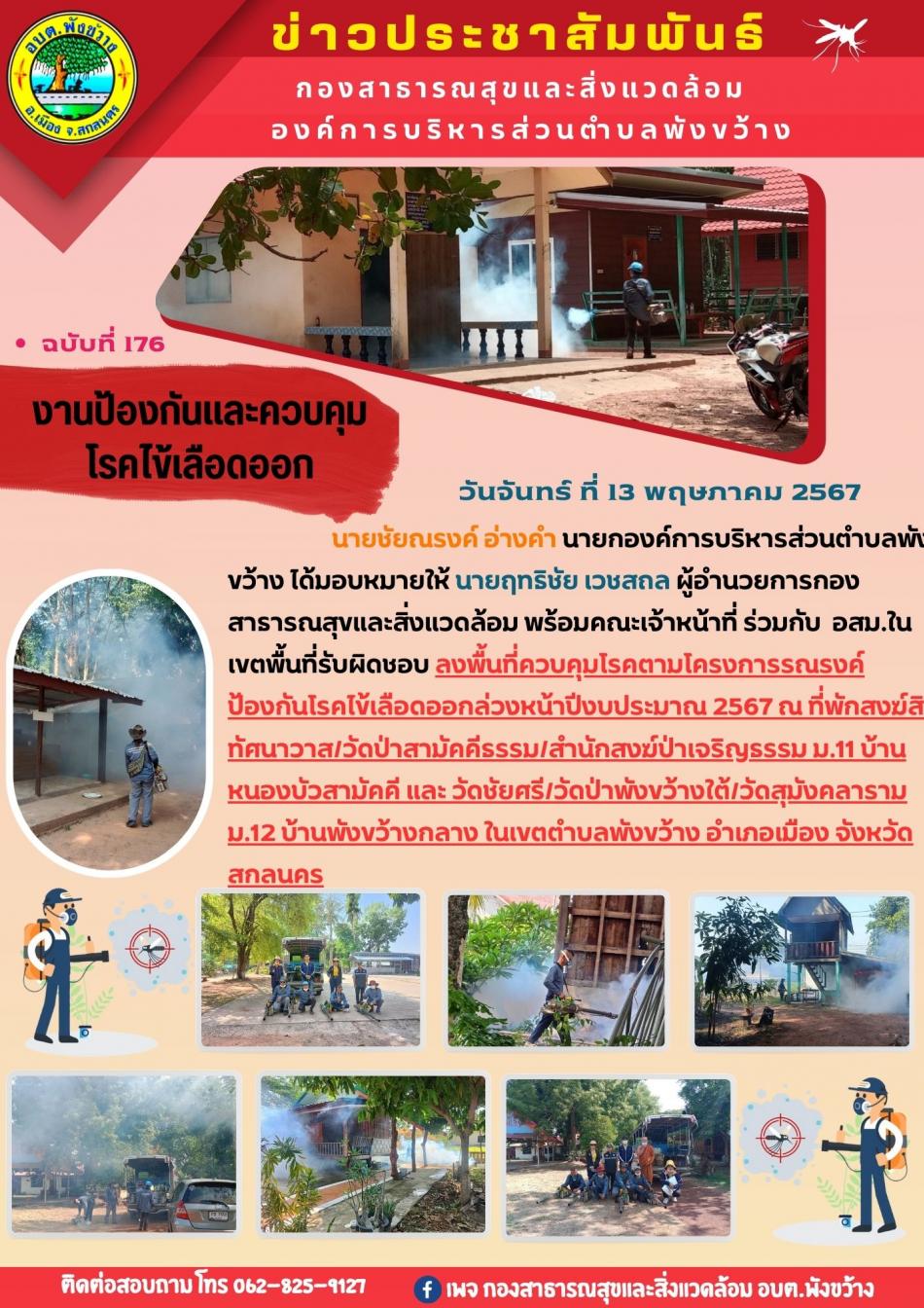 ควบคุมโรคตามโครงการรณรงค์ป้องกันโรคไข้เลือดออกล่วงหน้าปีงบประมาณ 2567 [13 พฤษภาคม 2567]