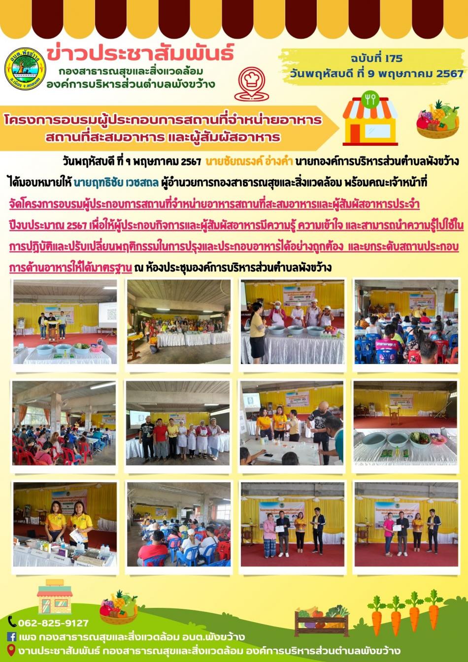 โครงการอบรมผู้ประกอบการสถานที่จำหน่ายอาหาร สถานที่สะสมอาหาร และผู้สัมผัสอาหาร [9 พฤษภาคม 2567]