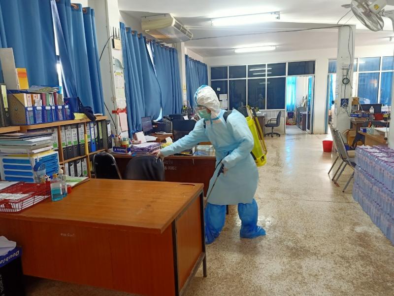 กิจกรรม ทำความสะอาดฆ่าเชื้อโควิด-19 ภายในสำนักงาน งานป้องกันและควบคุมโรค กองสาธารณสุขและสิ่งแวดล้อม