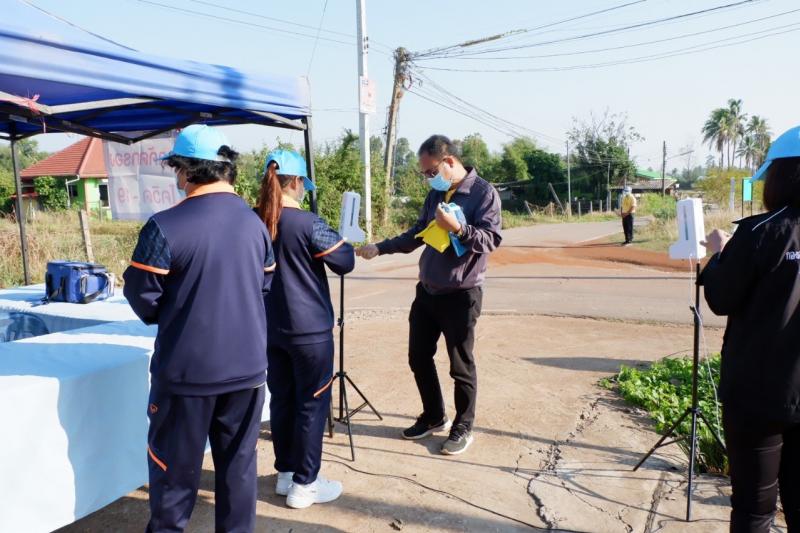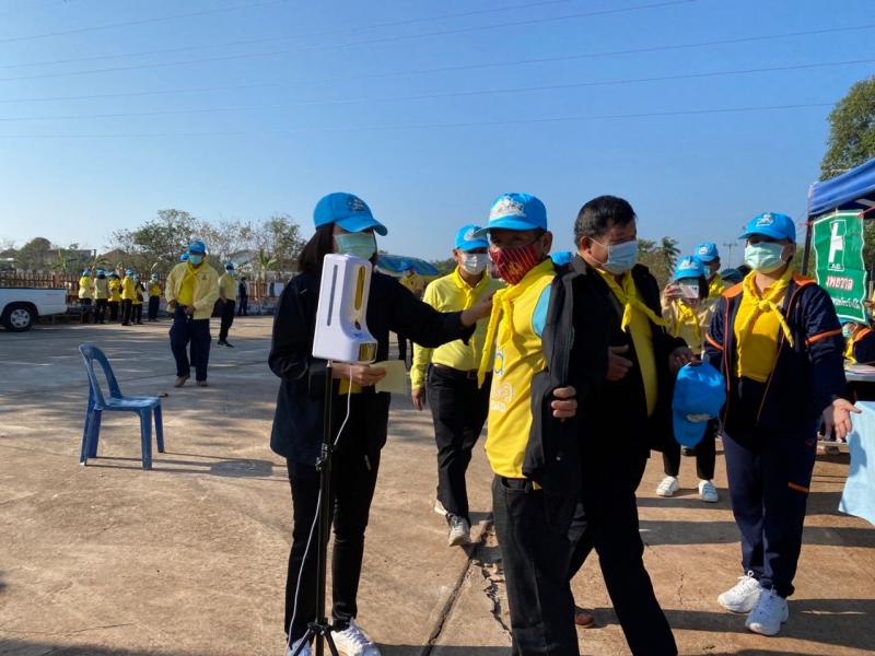 description วัน พฤหัสบดี ที่ ๒๔ กุมภาพันธ์ พ.ศ.๒๕๖๕ นำโดย นายสุระศักดิ์ งอยจันทร์ศรี รองปลัดรักษาราชการแทน ผอ.กองสาธารณสุขและ สิ่งแวดล้อม พร้อมคณะเจ้าหน้าที่ ร่วมกับ รพ.สต.พังขว้างใต้ และอสม.ตำบลพังขว้าง ร่วมคัดกรองเพื่อป้องกันการแพร่ระบาดของโรคติดเชื้อไวรัสโคโรนา 2019 (COVID-19) ในกิจกรรมโครงการจิตอาสาพัฒนาในโอกาสวันสำคัญของชาติไทย เนื่องในวันที่ระลึกพระบาทสมเด็จพระพุทธเลิศหล้านภาลัย ประจำปี ๒๕๖๕ เพื่อให้สอดคล้องตามมาตรการของจังหวัดสกลนครและมาตรการของกระทรวงสาธารณสุข person phe