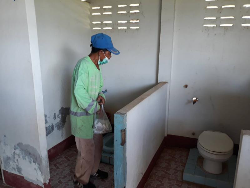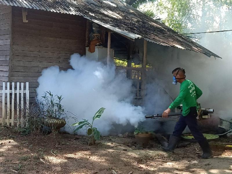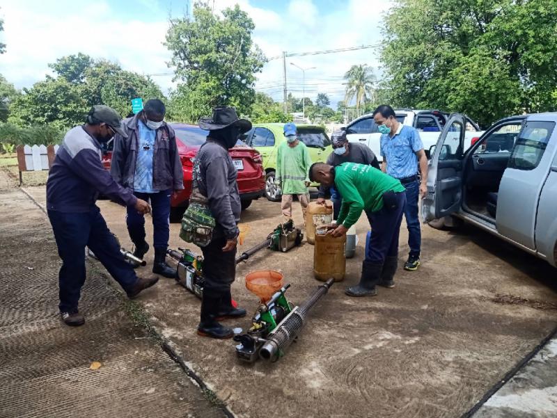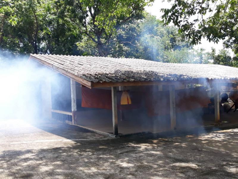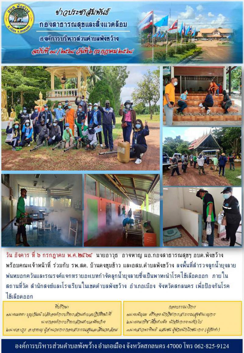 กองสาธารณสุขและสิ่งแวดล้อมร่วมกับ รพ.สต บ้านดงขุมข้าว และ อสม. ลงพื้นที่ สำรวจลูกน้ำยุงลายและพ่นหมอกควัน พื้นที่วัดในเขตตำบลพังขว้าง (10 ภาพ)