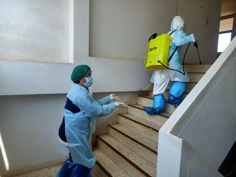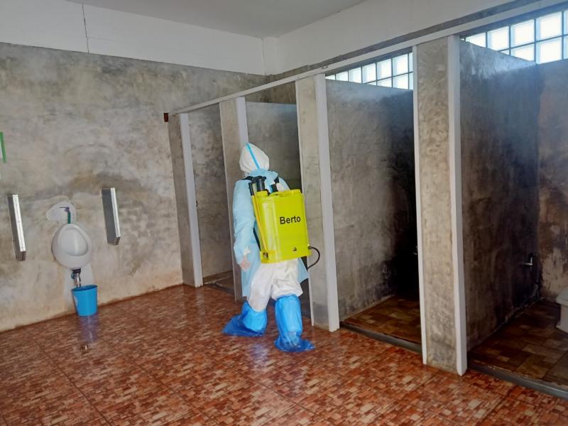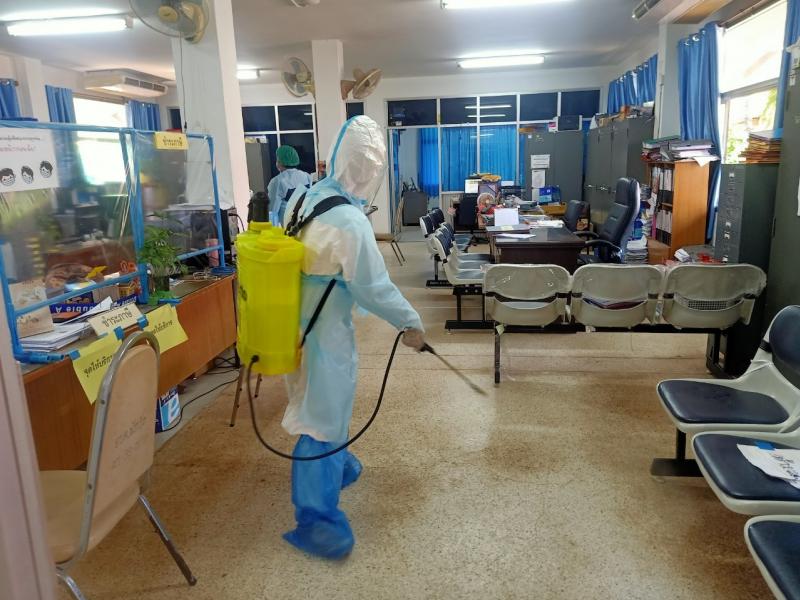 กิจกรรม ทำความสะอาดฆ่าเชื้อโควิด-19 ภายในสำนักงาน งานป้องกันและควบคุมโรค กองสาธารณสุขและสิ่งแวดล้อม