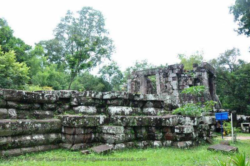 พระธาตุภูเพ็ก เป็นปราสาทขอมขนาดใหญ่ ก่อสร้างด้วยหินทราย เรือนธาตุตั้งอยู่บนฐานยกสูง ตอนหน้าของปราสาทมีฐานหินเป็นก้อนเรียงซ้อน ๆ กัน ยื่นออกคล้ายกากบาท เรียกว่า โคปุระ สูงกว่าฐานของเรือนฐานเล็กน้อย ตัวเรือนธาตุทั้งสี่ด้านย่อมุม ๆ ละ ๕ เหลี่ยม รวมเป็น ๒๐ เหลี่ยม ความกว้างของปราสาทโดยรอบกว้างด้านละ ๑๑ เมตร มีชานเป็นพื้นที่กว้างพอสมควร ความสูงจากพื้นดินถึงฐานชั้นที่ ๑ สูง ๑.๕๘ เมตร จากฐานชั้นที่ ๑ ถึงฐานชั้นที่ ๒ สูง .๗๐ เมตร ตัวเรือนปราสาททั้ง ๓ ด้าน คือ ทิศเหนือ ทิศใต้ และทิศตะวันตก บริเวณโดยรอบพบสระน้ำโบราณและแหล่งสกัดหินในการสร้างปราสาท หน้าอาคารปราสาทหันไปทางทิศตะวันออกและมีบันไดหินก่อปูนขึ้นบนยอดเขาประมาณ 491 ขั้น ตามตำนานสันนิษฐานว่าสร้างขึ้นสมัยเดียวกับพระธาตุนารายณ์เจงเวง