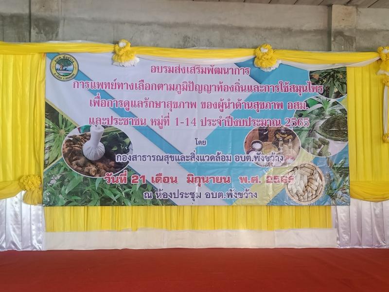 โครงการ อบรมส่งเสริมพัฒนาการ การแพทย์ทางเลือกตามภูมิปัญญาท้องถิ่น และการใช้สมุนไพร เพื่อการดูแลรักษา สุขภาพ ของผู้นำด้านสุขภาพ อสม.และประชาชน หมู่ ๑-๑๔ ในเขตตำบลพังขว้าง ประจำปีงบประมาณ ๒๕๖๕