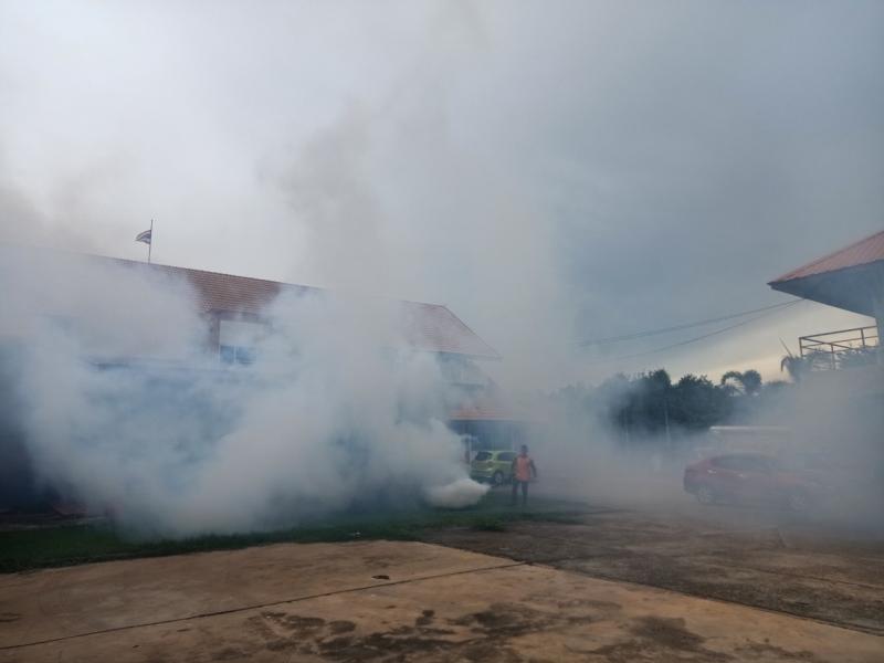 กิจกรรมพ่นหมอกควัน ควบคุมและป้องกันโรคไข้เลือดออก ภายในสำนักงาน กองสาธารณสุขและสิ่งแวดล้อม