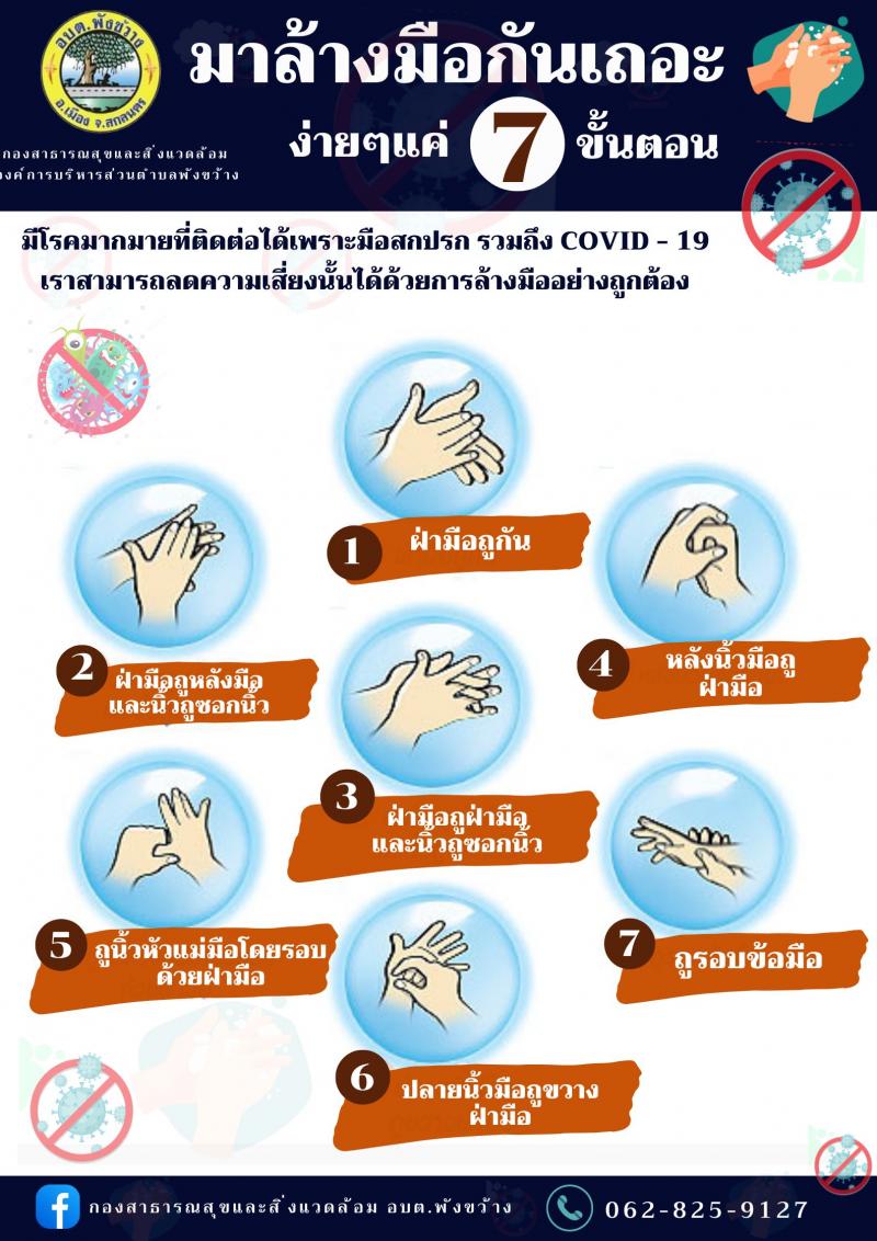 รายละเอียด : ขั้นตอนที่ 1 ฝ่ามือถูฝ่ามือ ล้างมือด้วยน้ำสะอาด ถูสบู่จนขึ้นฟอง หลังจากนั้นนำฝ่ามือทั้งสองข้างประกบกัน และถูวนให้ทั่ว