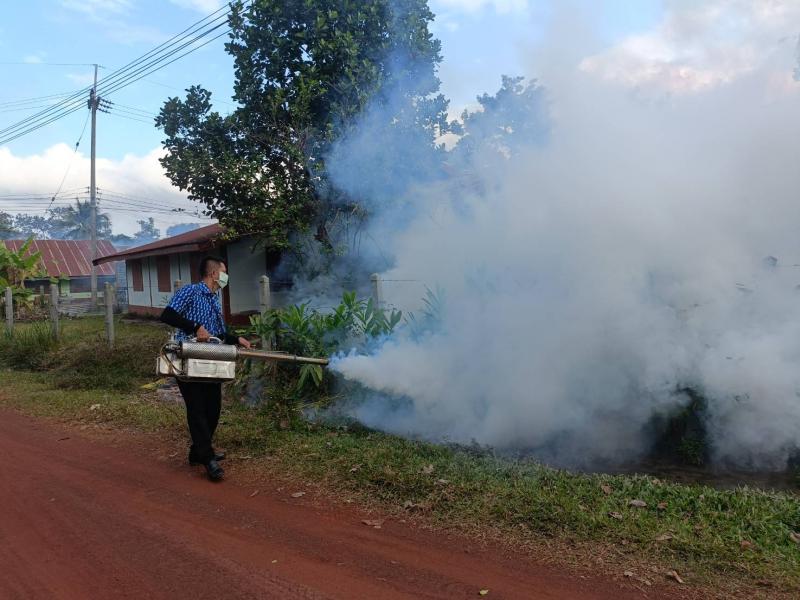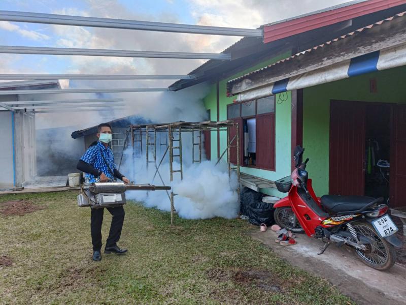 ลงพื้นที่สอบสวนโรคและพ่นหมอกควันกรณีเกิดการระบาดในเขตพื้นที่ หมู่ที่ 14 บ้านดงขุมข้าวใต้ ตำบลพังขว้าง อำเภอเมือง จังหวัดสกลนคร