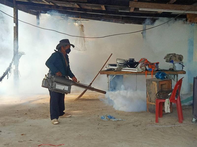 นำโดย นายฤทธิชัย เวชสถล ผู้อำนวยการกองสาธารณสุขและสิ่งแวดล้อม พร้อมเจ้าหน้าที่กองสาธารณสุขฯ และ อสพม.ประจำเครื่องพ่น
