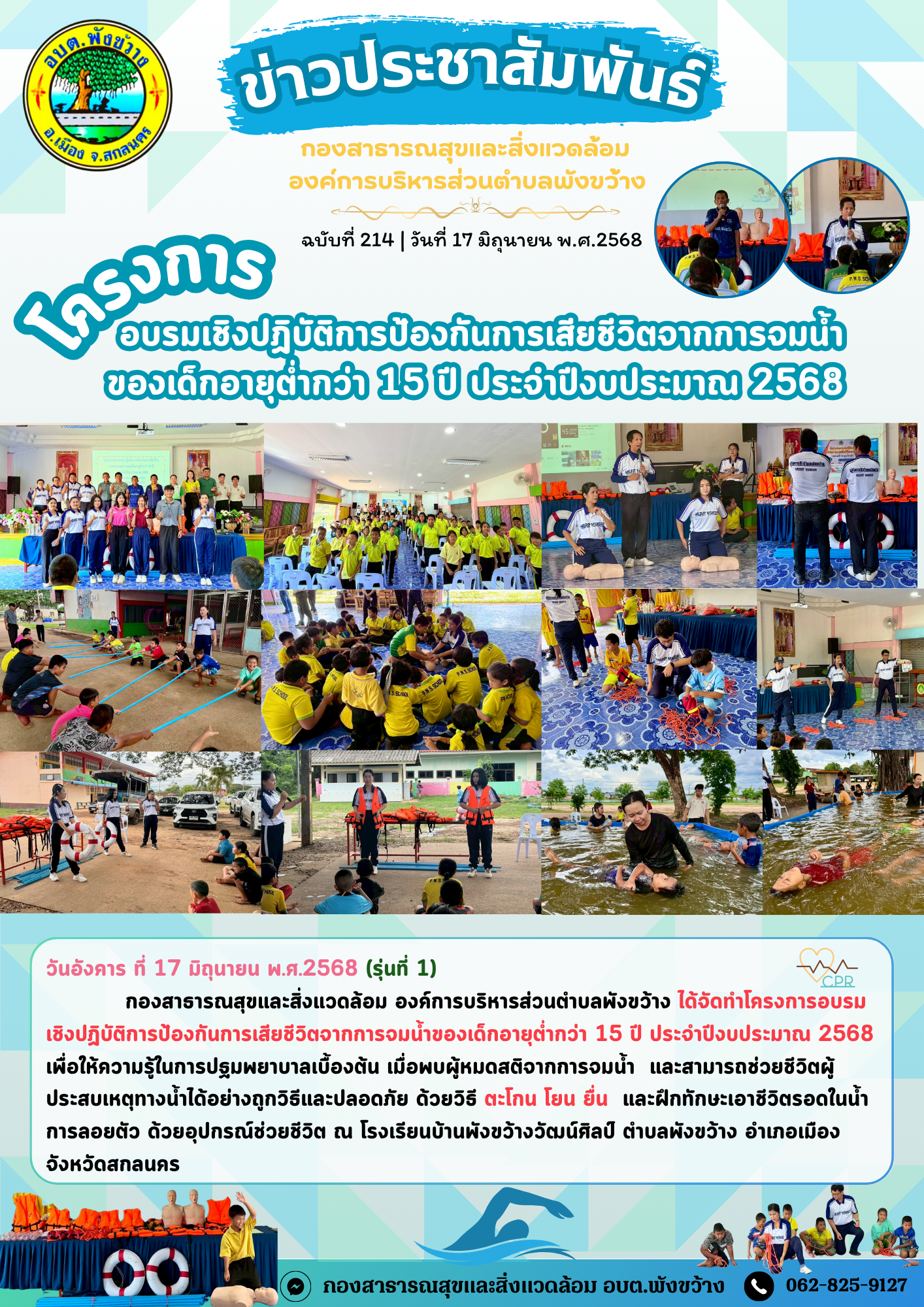 โครงการอบรมเชิงปฏิบัติการป้องกันการเสียชีวิตจากการจมน้ำ ของเด็กอายุต่ำกว่า 15 ปี ประจำปีงบประมาณ 2568 (รุ่นที่ 1) [17 มิถุนายน 2568]