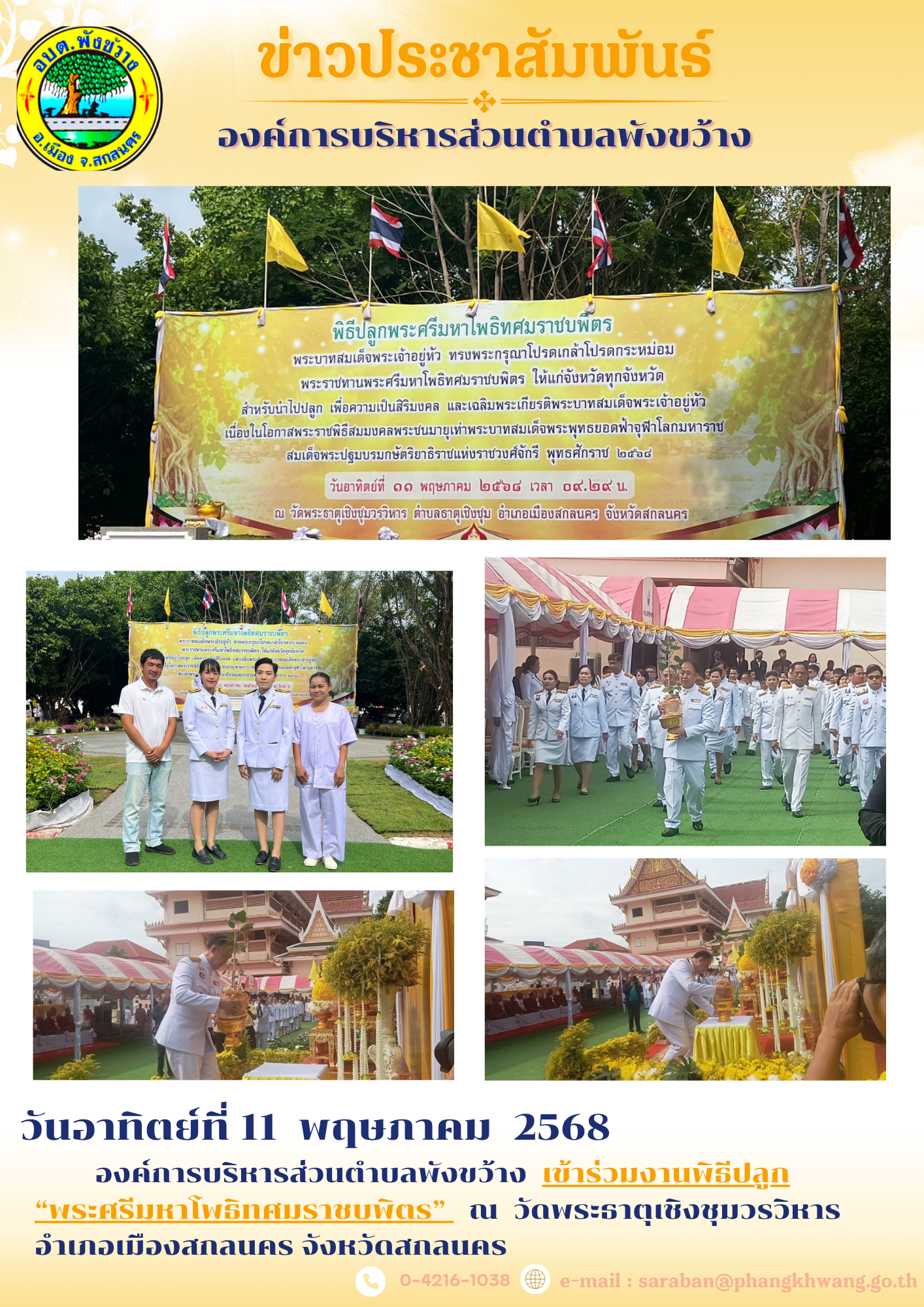 องค์การบริหารส่วนตำบลพังขว้าง เข้าร่วมงานพิธีปลูก “พระศรีมหาโพธิทศมราชบพิตร” [13 พฤษภาคม 2568]