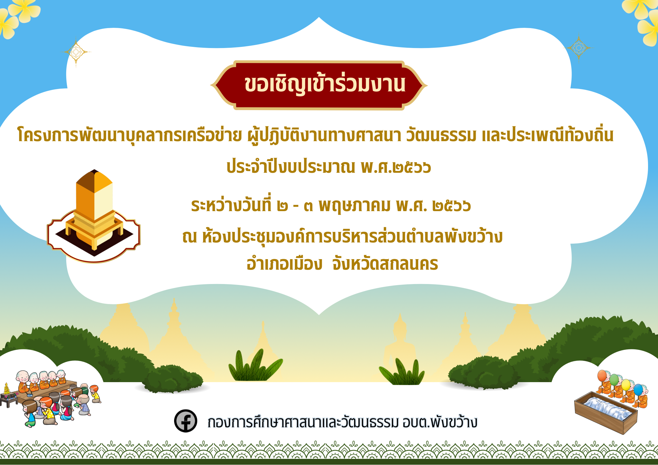 โครงการพัฒนาบุคลากรเครือข่าย ผู้ปฏิบัติงานทางศาสนา วัฒนธรรม และประเพณีท้องถิ่น ประจำปีงบประมาณ พ.ศ. ๒๕๖๖ [14 พฤศจิกายน 2566]