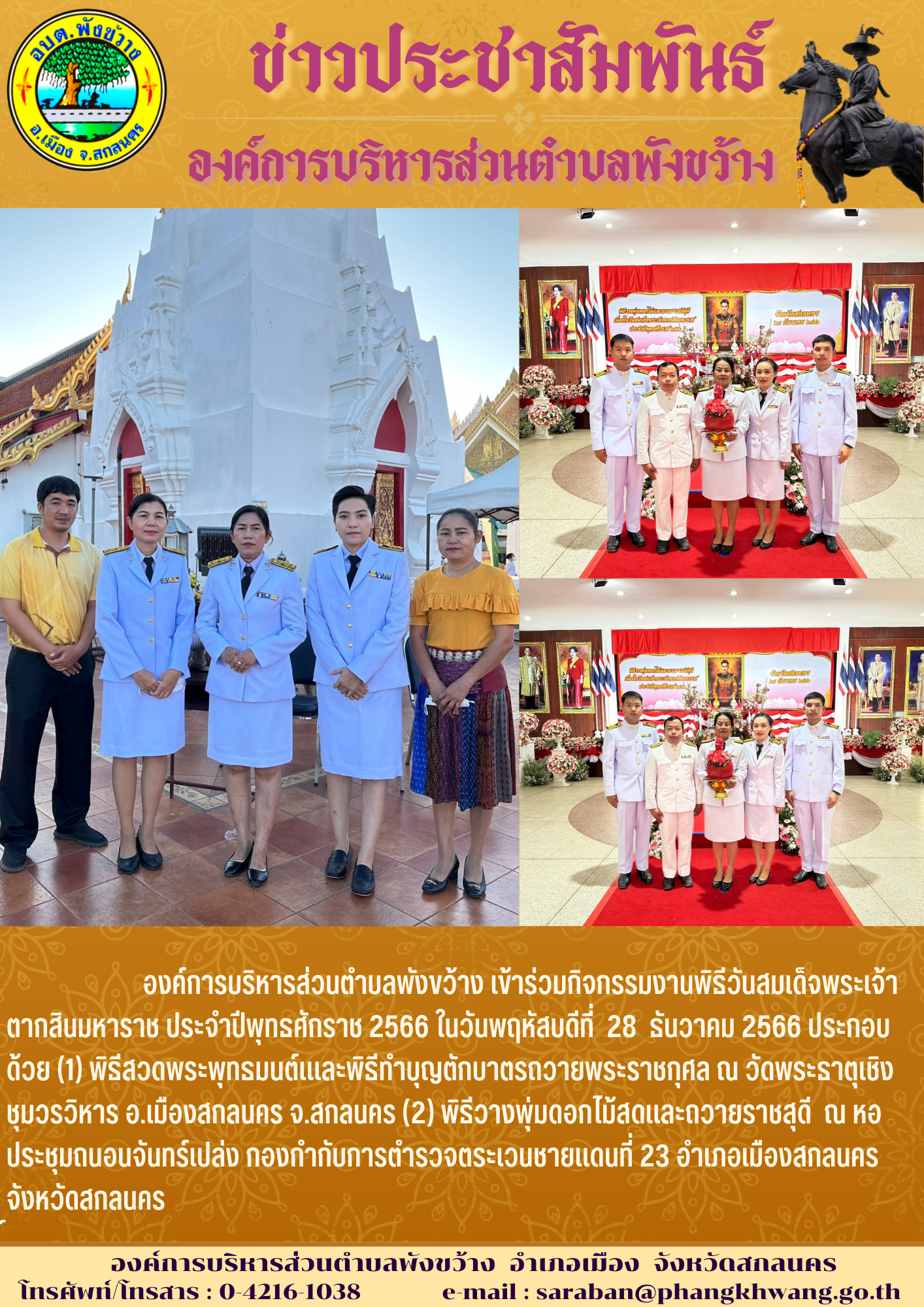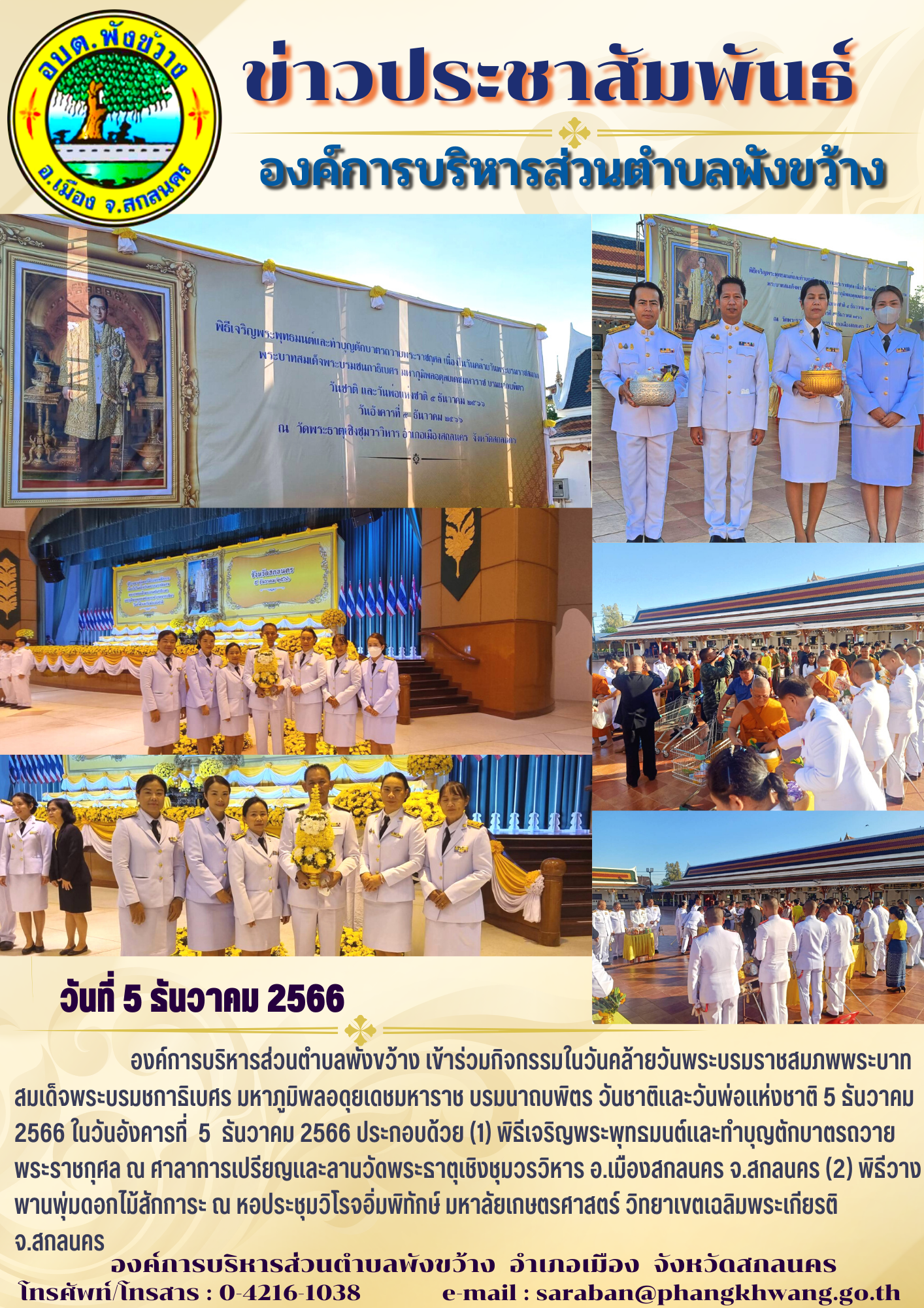 องค์การบริหารส่วนตำบลพังขว้าง เข้าร่วมกิจกรรมในวันคล้ายวันพระบรมราชสมภพพระบาทสมเด็จพระบรมชกาธิเบศร มหาภูมิพลอดุยเดชมหาราช บรมนาถบพิตร วันชาติและวันพ่อแห่งชาติ 5 ธันวาคม 2566 [6 ธันวาคม 2566]