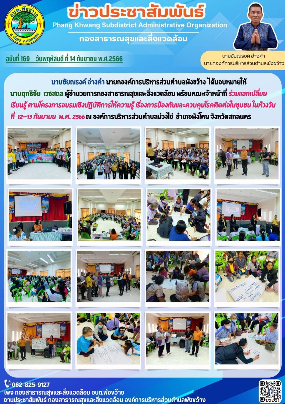 ร่วมแลกเปลี่ยนเรียนรู้ ตามโครงการอบรมเชิงปฏิบัติการให้ความรู้ เรื่องการป้องกันและควบคุมโรคติดต่อในชุมชน ในห้วงวันที่ 12-13 กันยายน พ.ศ. 2566 [14 กันยายน 2566]