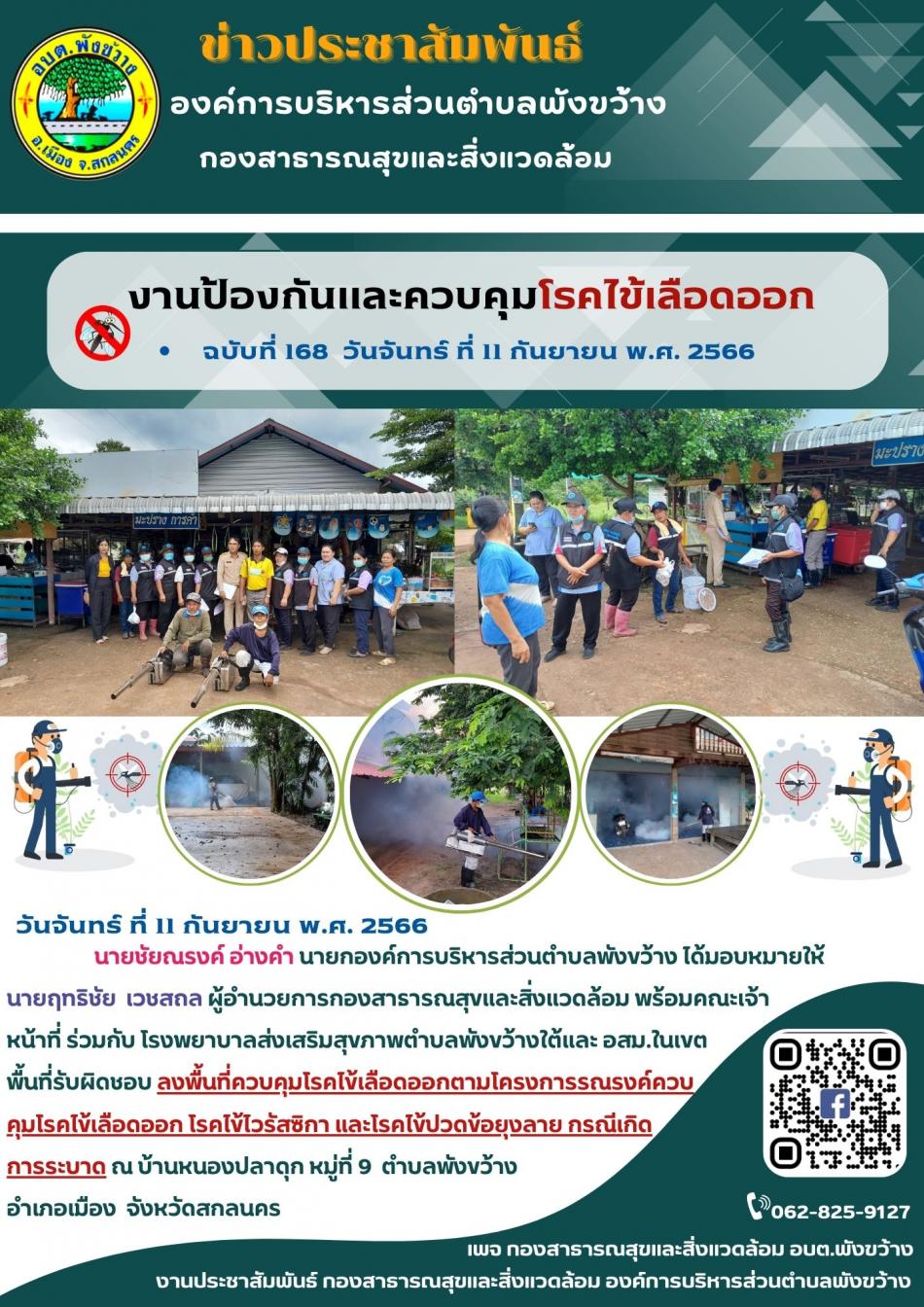 งานป้องกันและควบคุมโรคไข้เลือดออก บ้านหนองปลาดุก หมู่ที่ 9 ตำบลพังขว้าง อำเภอเมือง จังหวัดสกลนคร [11 กันยายน 2566]