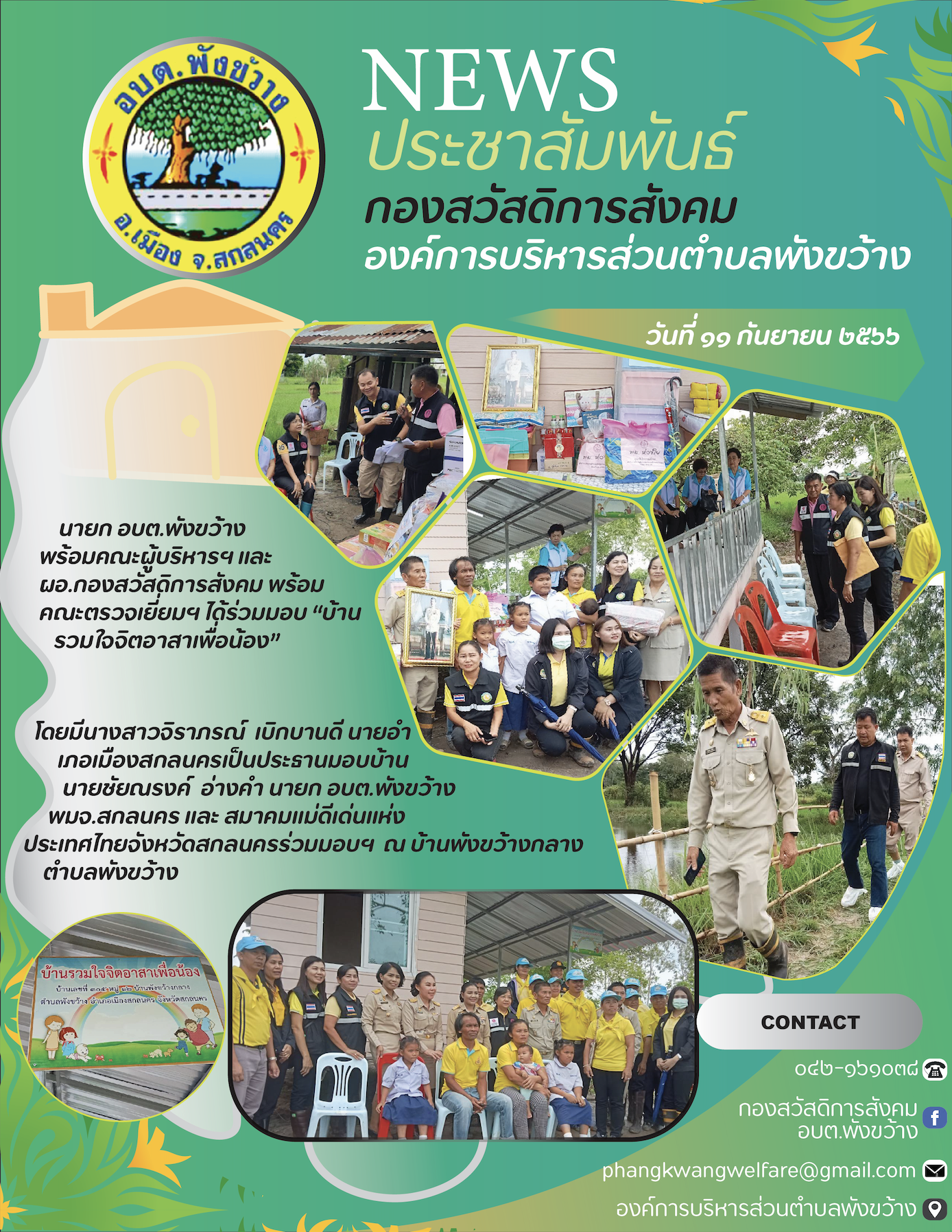 นายก พร้อมคณะผู้บริหารฯ และ ผอ.กองสวัสดิการฯ พร้อมคณะตรวจเยี่ยมฯ องค์การบริหารส่วนตำบลพังขว้าง ได้ร่วมมอบ "บ้านรวมใจจิตอาสาเพื่อน้อง" [11 กันยายน 2566]
