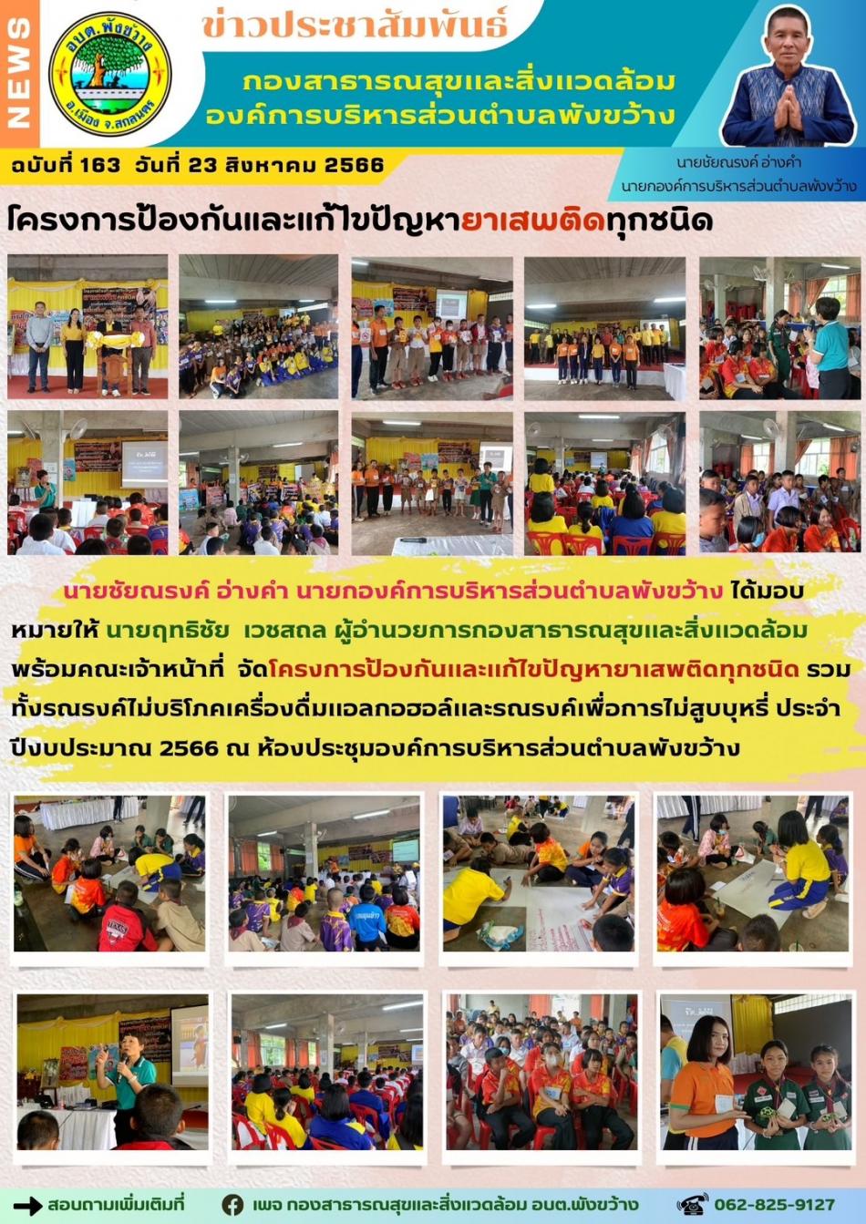 โครงการป้องกันและแก้ไขปัญหายาเสพติดทุกชนิด รวมทั้งรณรงค์ไม่บริโภคเครื่องดื่มแอลกอฮอล์และรณรงค์เพื่อการไม่สูบบุหรี่ ประจำปีงบประมาณ 2566 [23 สิงหาคม 2566]