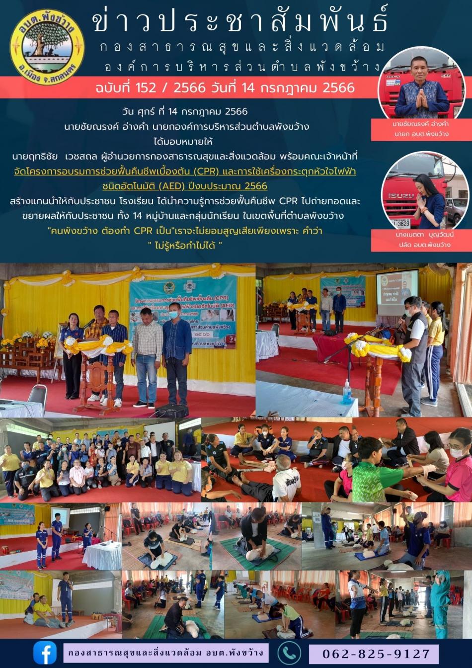 โครงการอบรมการช่วยฟื้นคืนชีพเบื้องต้น (CPR) และการใช้เครื่องกระตุกหัวใจไฟฟ้าชนิดอัตโนมัติ (AED) ปีงบประมาณ 2566 [14 กรกฎาคม 2566]