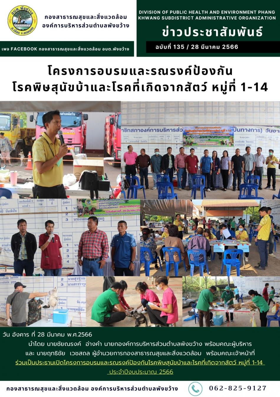 โครงการอบรมและรณรงค์ป้องกัน โรคพิษสุนัขบ้าและโรคที่เกิดจากสัตว์ หมู่ที่ 1-14 ประจำปี 2566 [28 มีนาคม 2566]