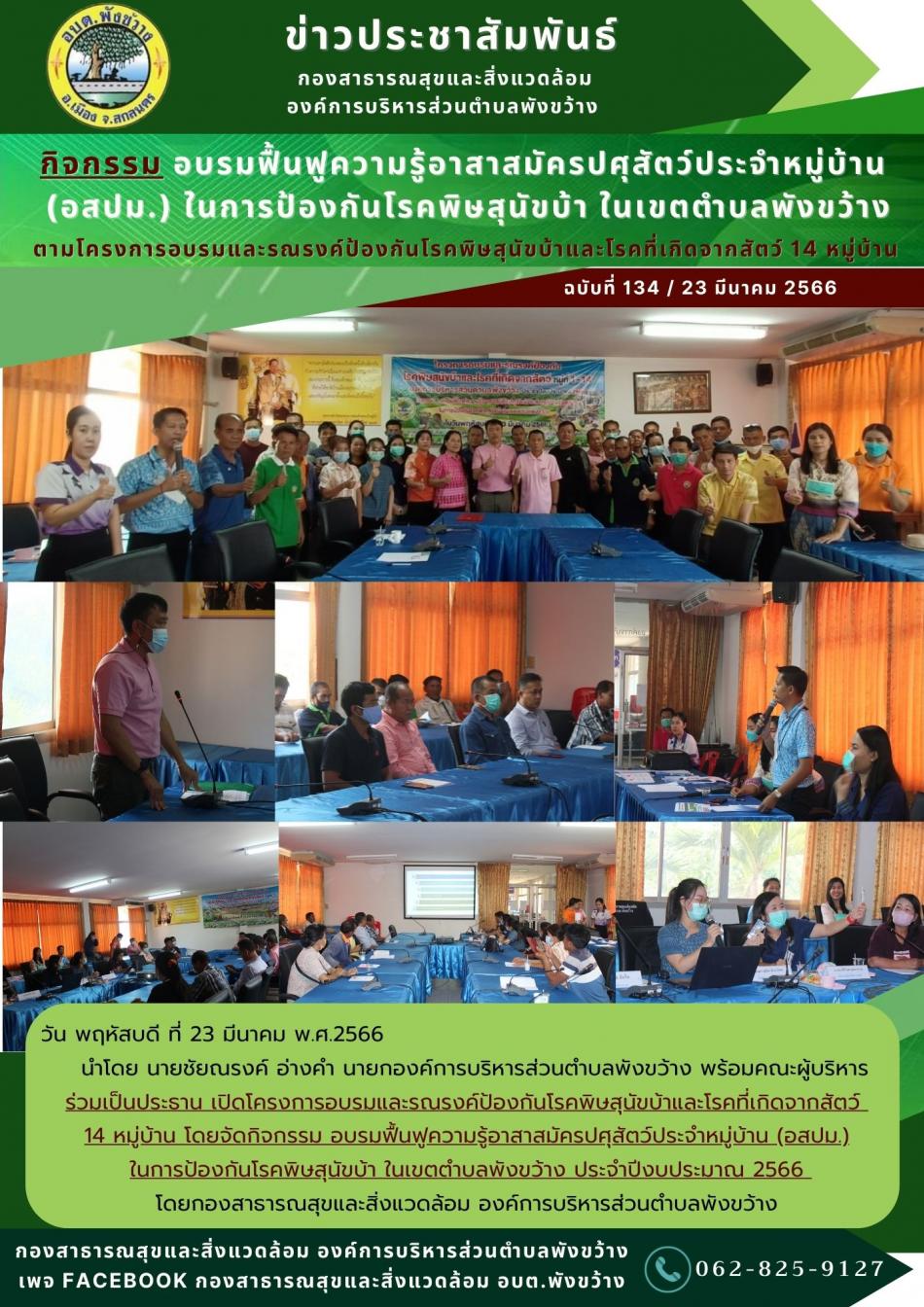 กิจกรรม อบรมฟื้นฟูความรู้อาสาสมัครปศุสัตว์ประจำหมู่บ้าน (อสปม.) ในการป้องกันโรคพิษสุนัขบ้า ในเขตตำบลพังขว้าง ประจำปีงบประมาณ 2566 [23 มีนาคม 2566]