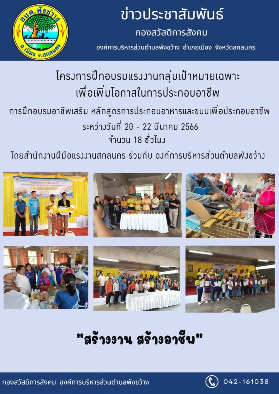 องค์การบริหารส่วนตำบลพังขว้างร่วมกับกรมพัฒนาฝีมือแรงงาน อบรมฝึกอาชีพ [22 มีนาคม 2566]