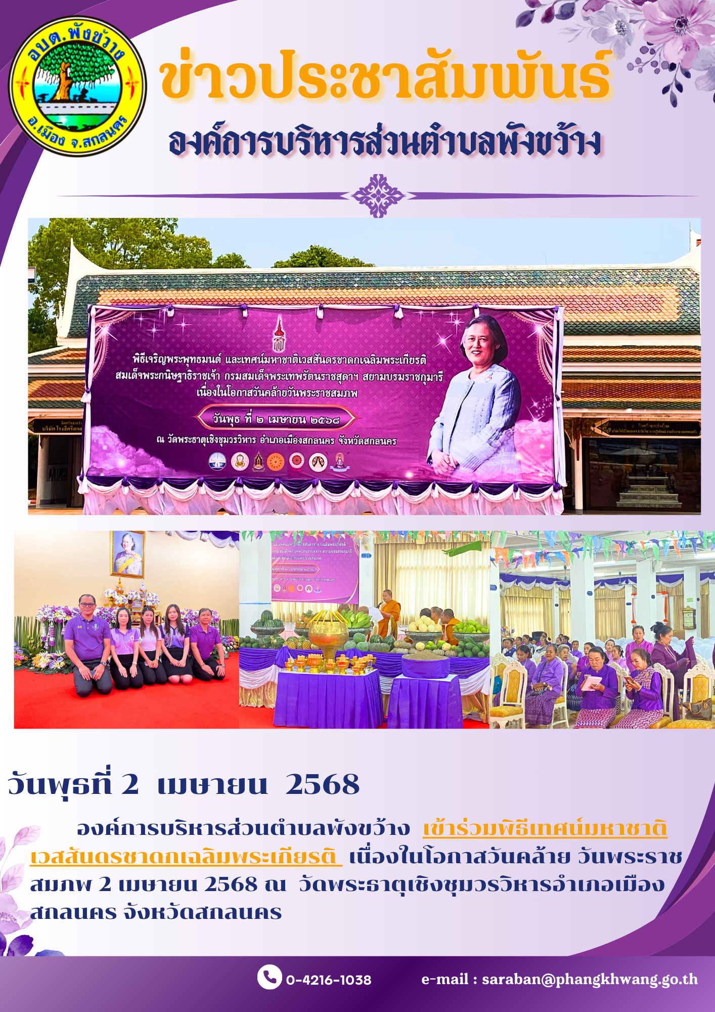องค์การบริหารส่วนตำบลพังขว้าง เข้าร่วมพิธีเทศน์มหาชาติเวสสันดรชาดกเฉลิมพระเกียรติ เนื่องในโอกาสวันคล้าย วันพระราชสมภพ ในวันพุธที่ 2 เมษายน 2568 [2 เมษายน 2568]